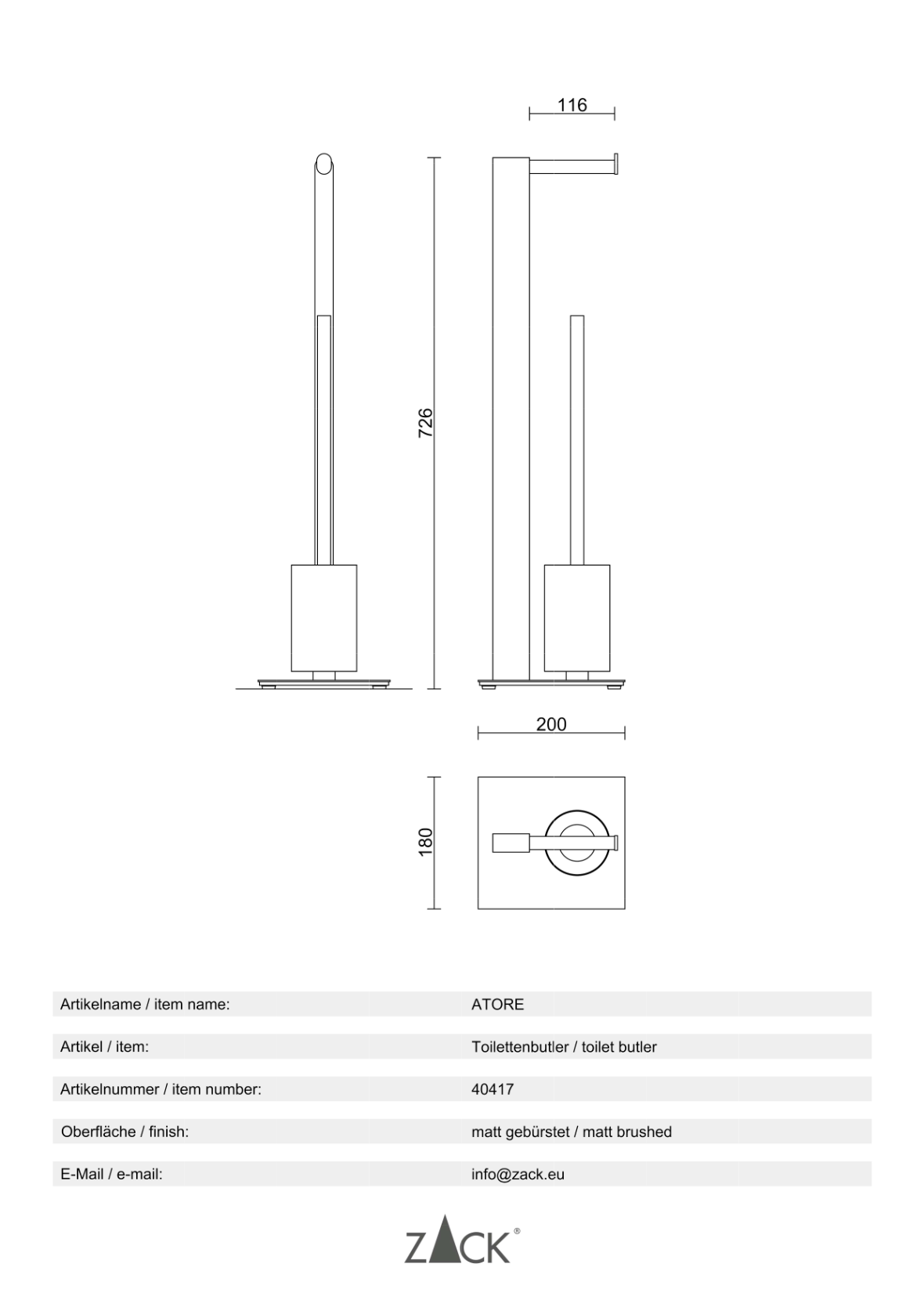 - Weitere ergänzende Accessoires der ZACK Design-Serie "ATORE" sind erhältlich