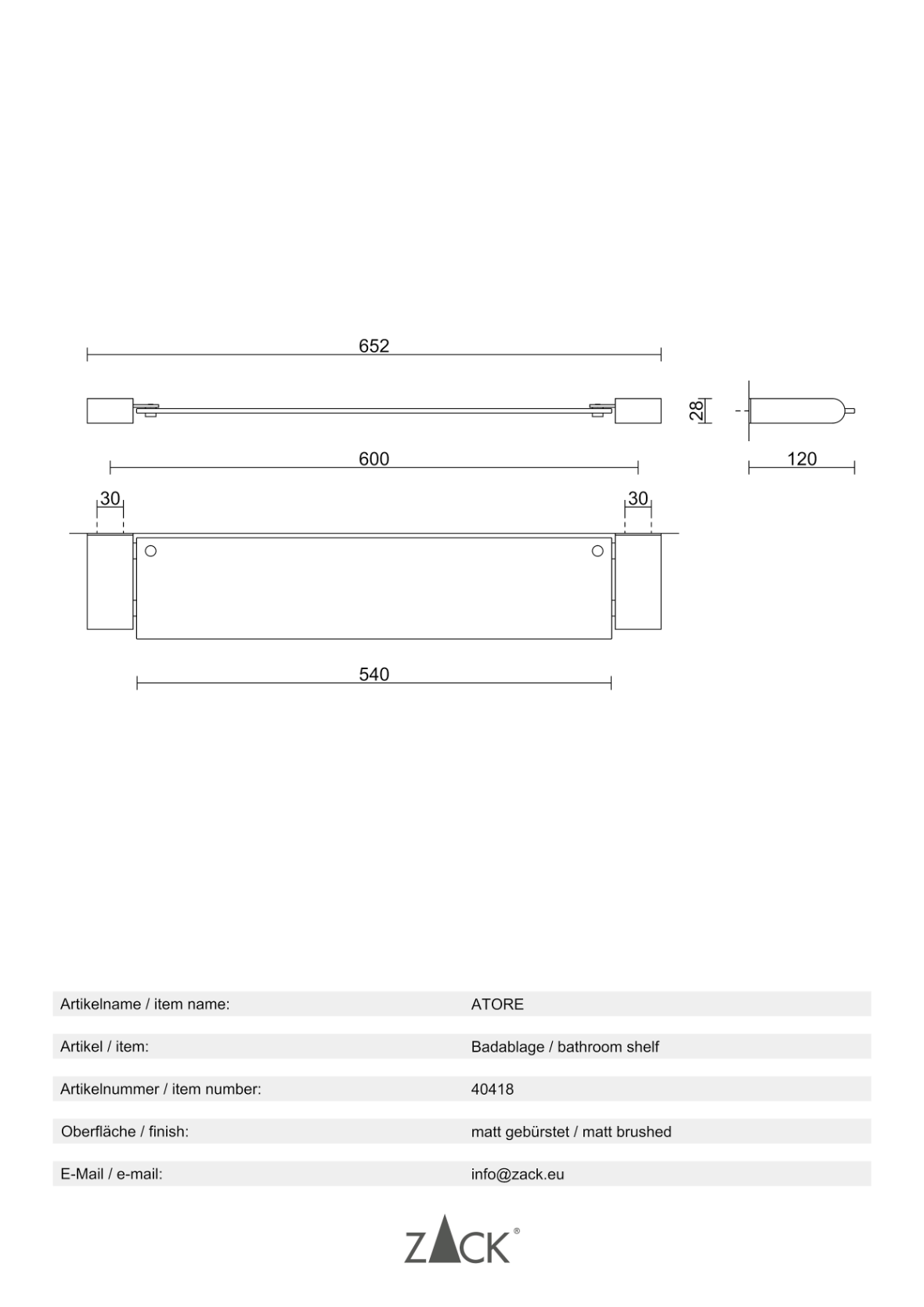 - Weitere ergänzende Accessoires der ZACK Design-Serie "ATORE" sind erhältlich