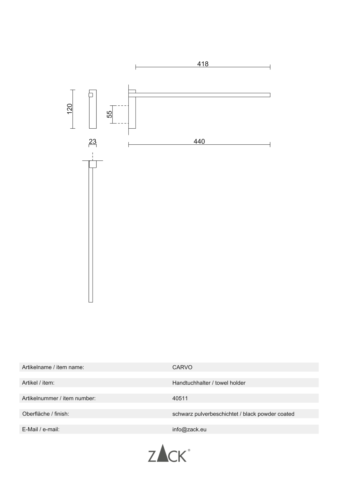 - Weitere ergänzende Accessoires der ZACK Design-Serie "CARVO" sind erhältlich