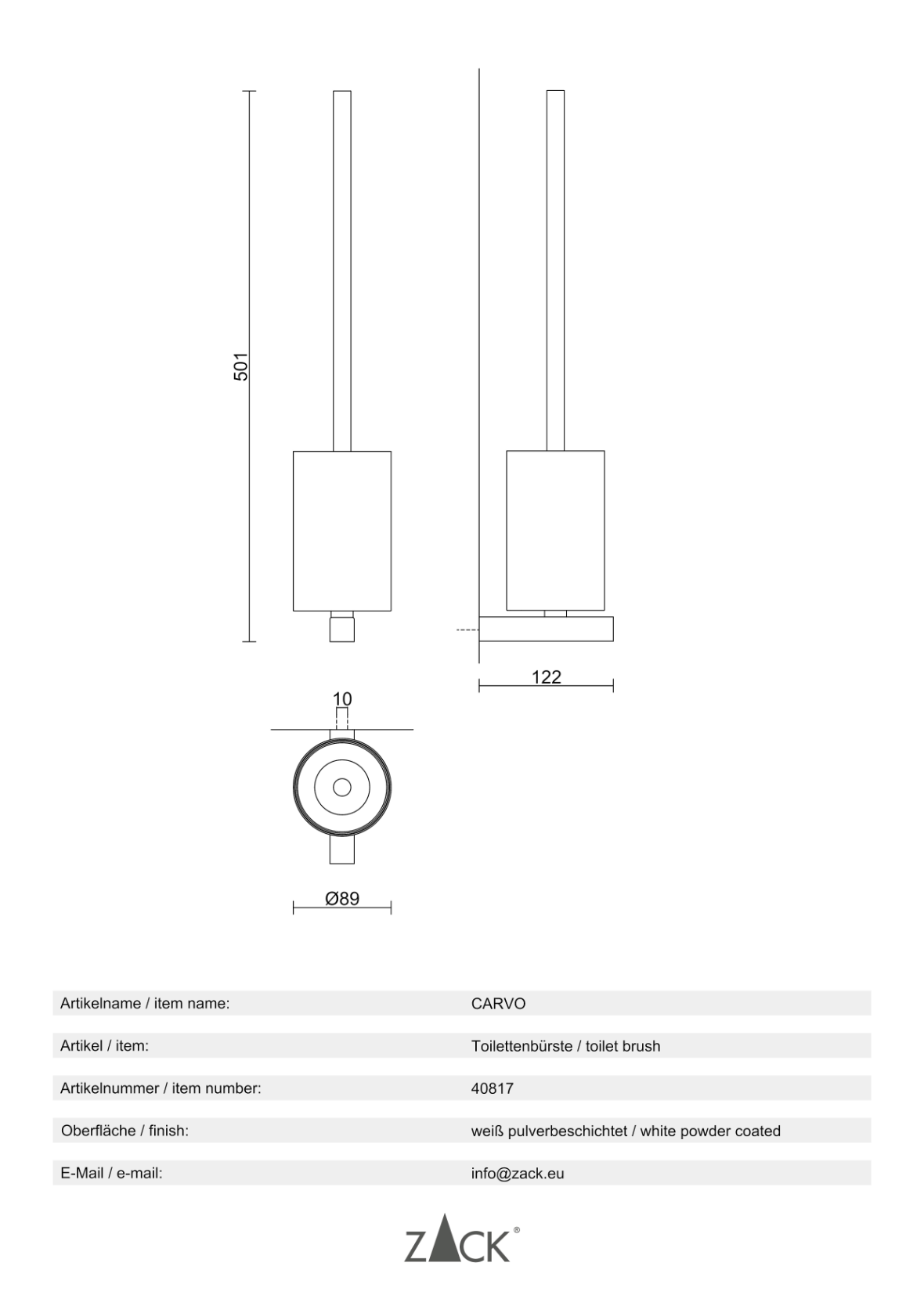 - Weitere ergänzende Accesssoires der ZACK Design-Serie "CARVO" sind erhältlich