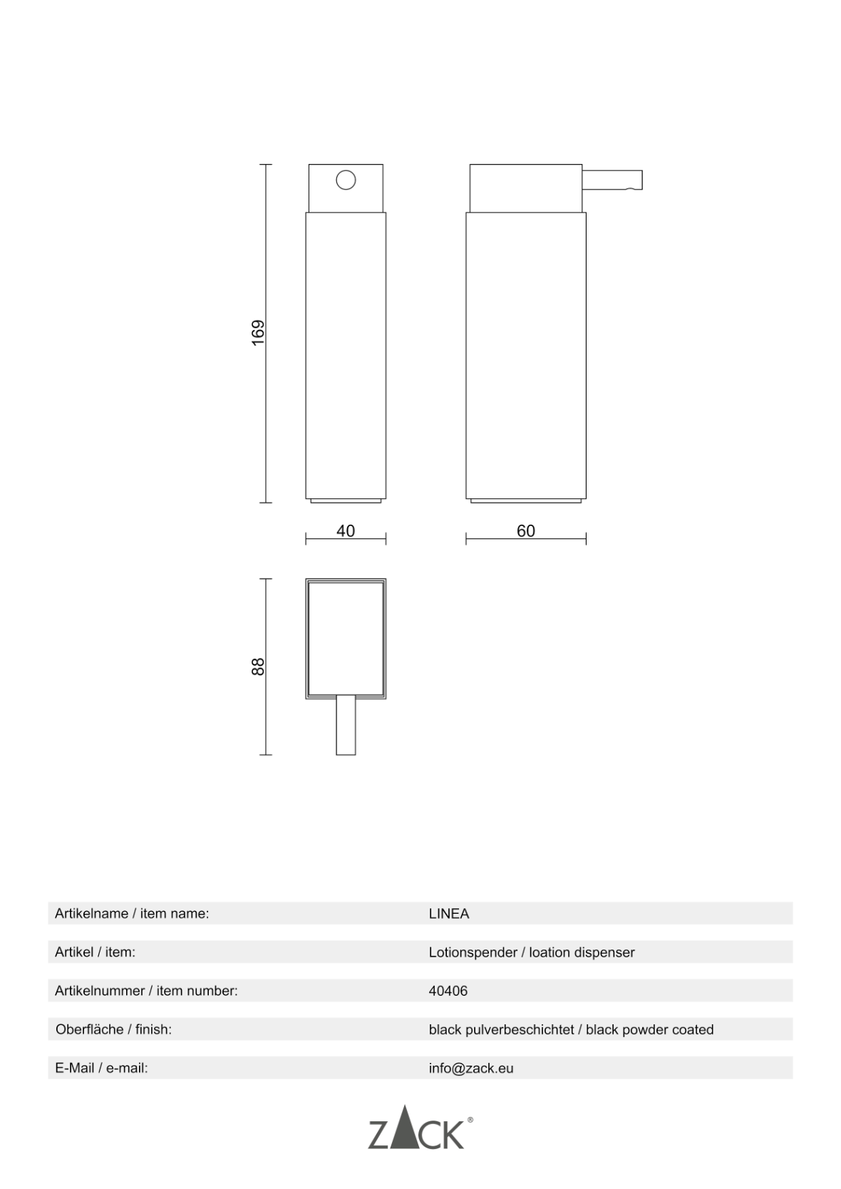 - Weitere ergänzende Accessoires der ZACK Design-Serie "LINEA" sind erhältlich