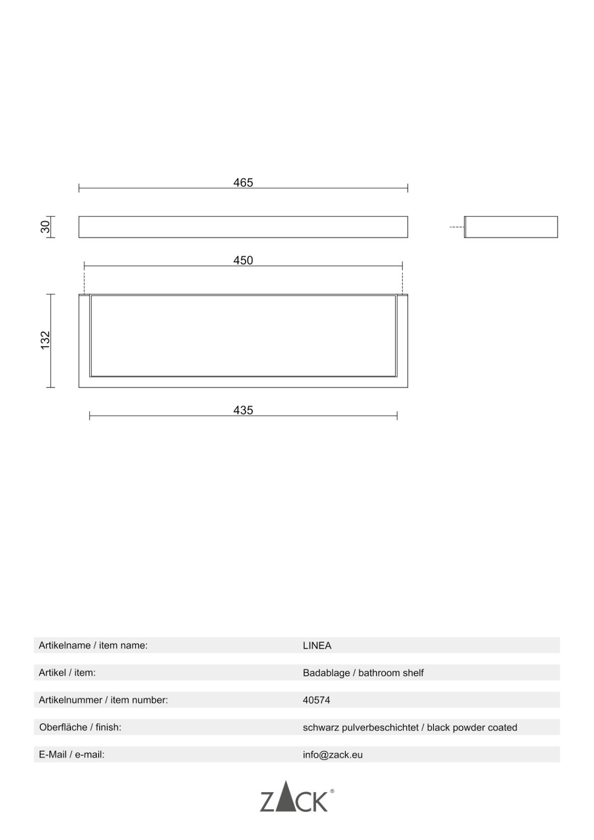 - Weitere ergänzende Accessoires der ZACK Design-Serie "LINEA" sind erhältlich