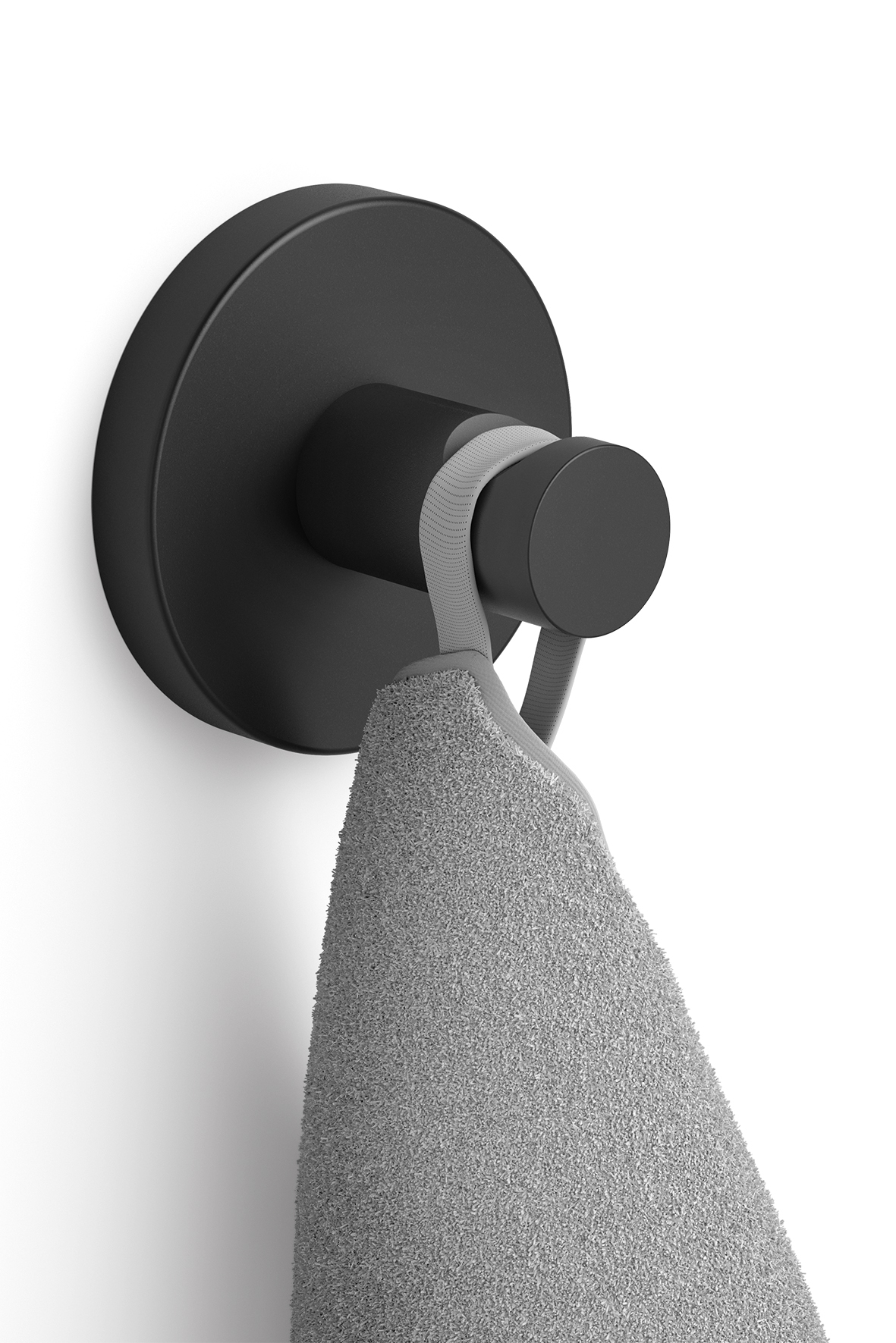 Handtuchhaken aus schwarz pulverbeschichtetem Edelstahl für Bad und Küche, praktisch für Handtücher mit und ohne Aufhängeschlaufe.