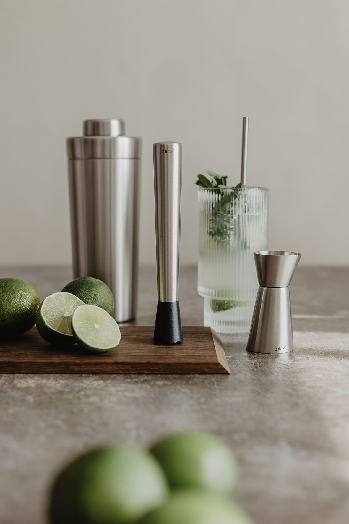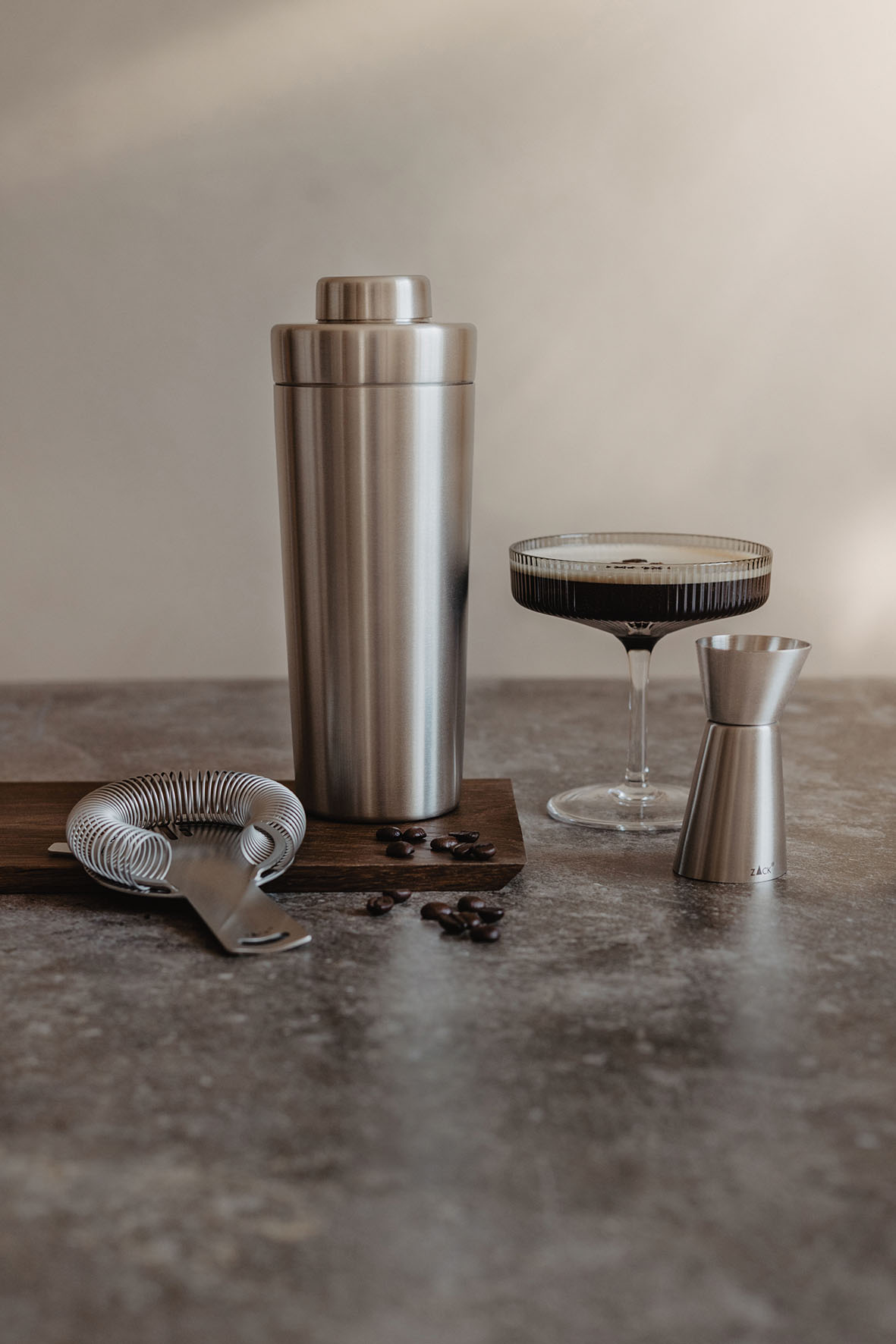- Exclusive, matt brushed stainless steel surface 3 parts: lid, attachment with integrated sieve and beaker