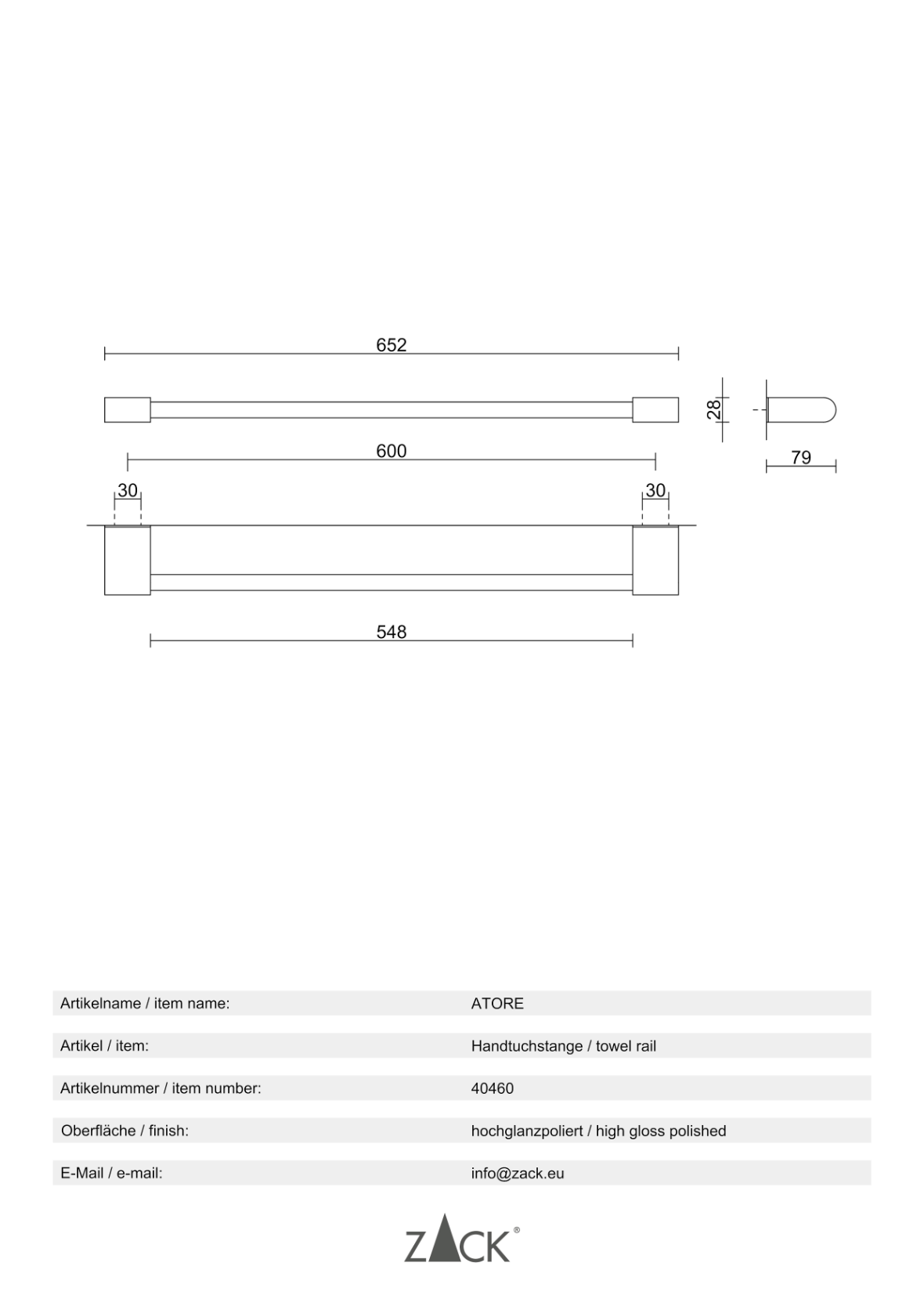 "ATORE" towel rail, 65 cm, high gloss