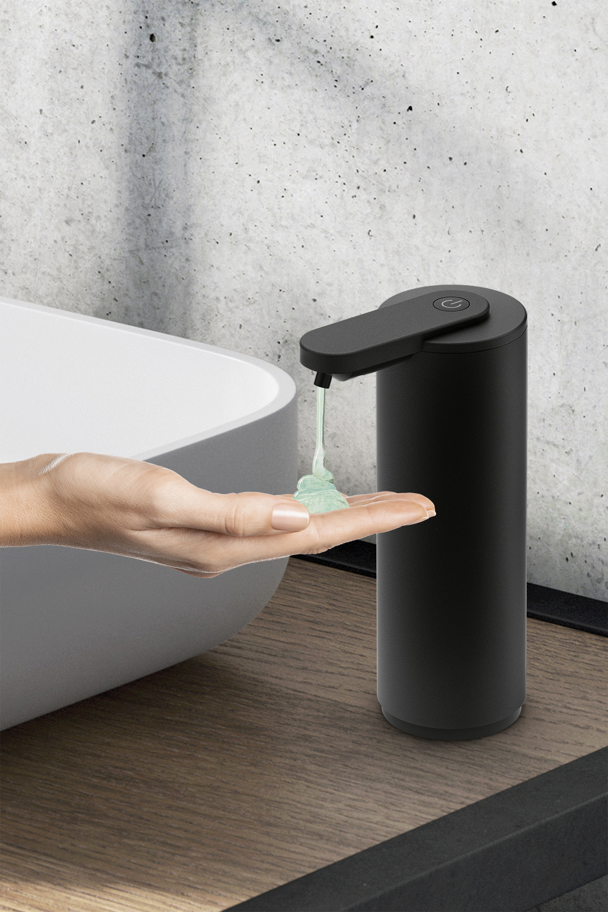 With infrared sensor. For liquid soap, lotion and disinfectant gel as well as for contact-free dispensing with easy operation. Removal quantity selectable in 2 steps. No dripping. With rechargeable battery (2W DC 5.0V/ 0.8A), 1800mAh Li-Ion, a USB cable is included. Long battery life. Inner container (PETG) to screw in. Stable.