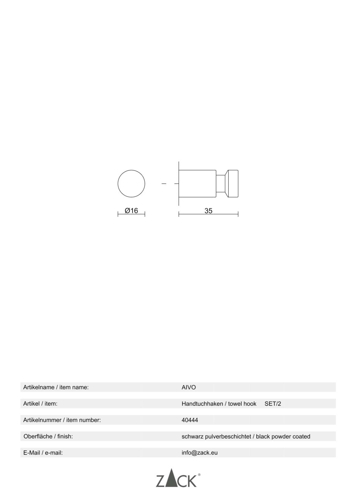 Product information "AIVO" towel hook, set/2, ø 1,6 cm, black
