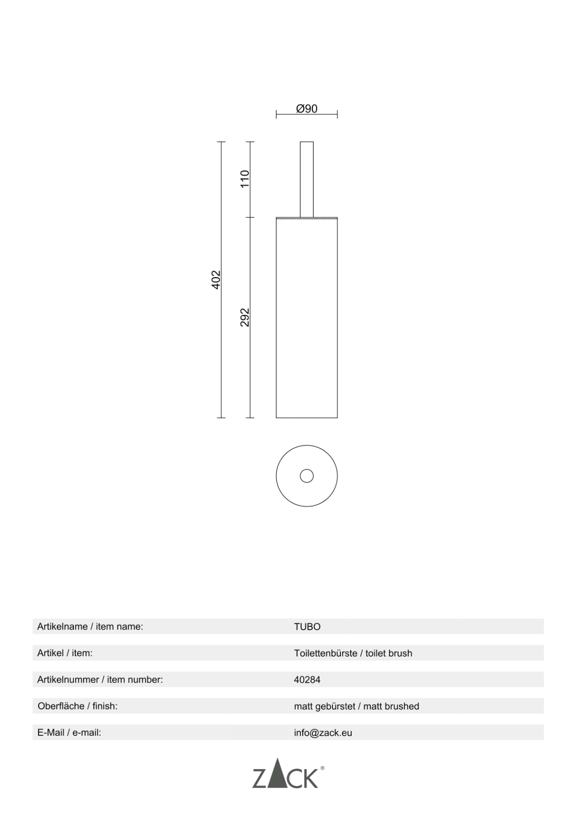 Simple, elegant and reserved, the TUBO toilet brush is always at your service - thanks to the closed container, the brush remains discreetly hidden. The heavy weight of the brush holder ensures that it stands securely. An additional inner container made of plastic can be removed to make cleaning easier.