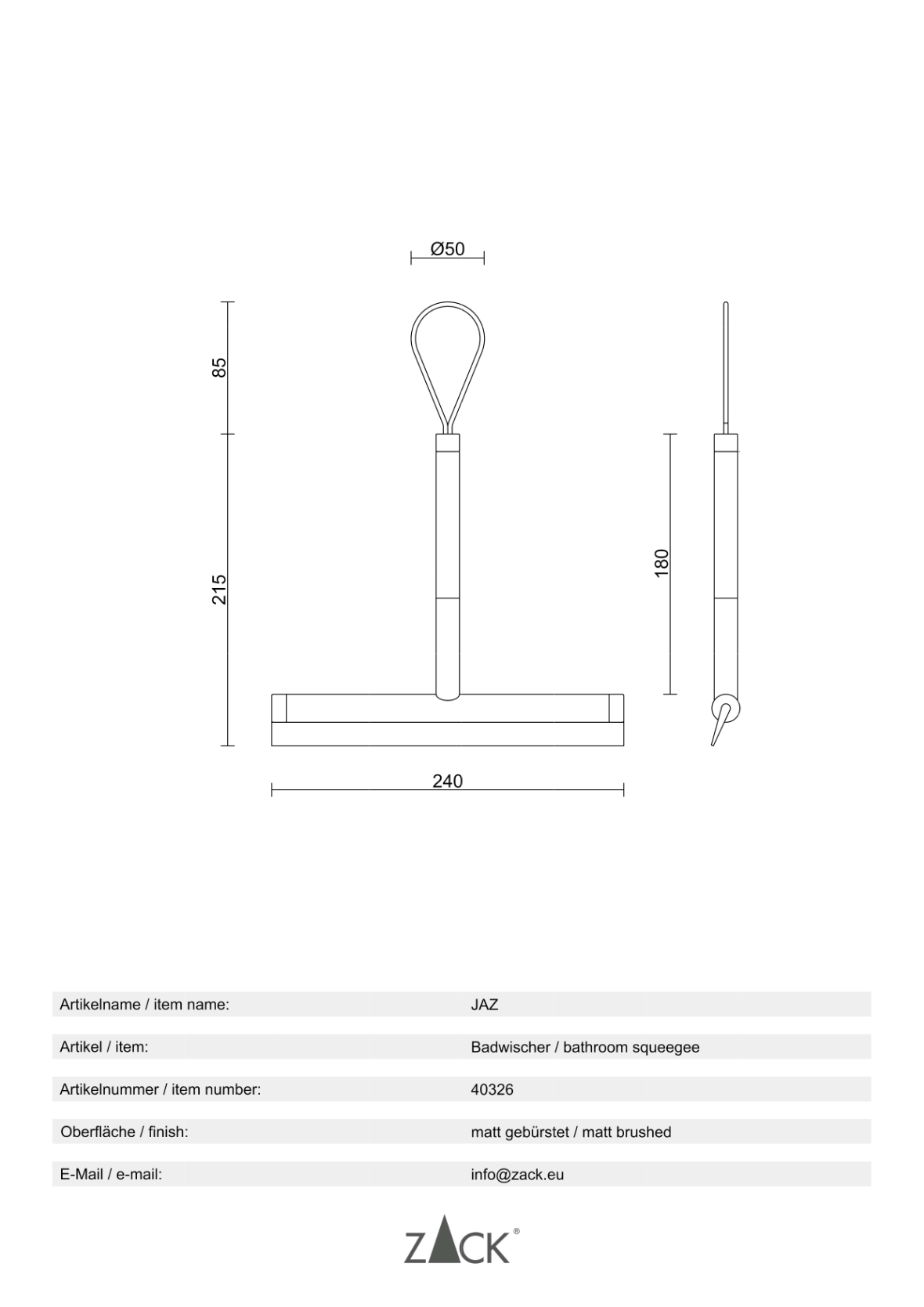 With the JAZ bathroom squeegee, you can remove water and soap residues from glass walls and tiles quickly and without leaving streaks. If the squeegee falls down, the end caps on both sides will protect the tiles. In addition, they fix the exchangeable removable lip in place so that it can't slip during handling. The bathroom squeegee can be hung up in many different places with the large, flexible loop. Incidentally, the suspension of the loop can be rotated and aligns itself in the desired direction.