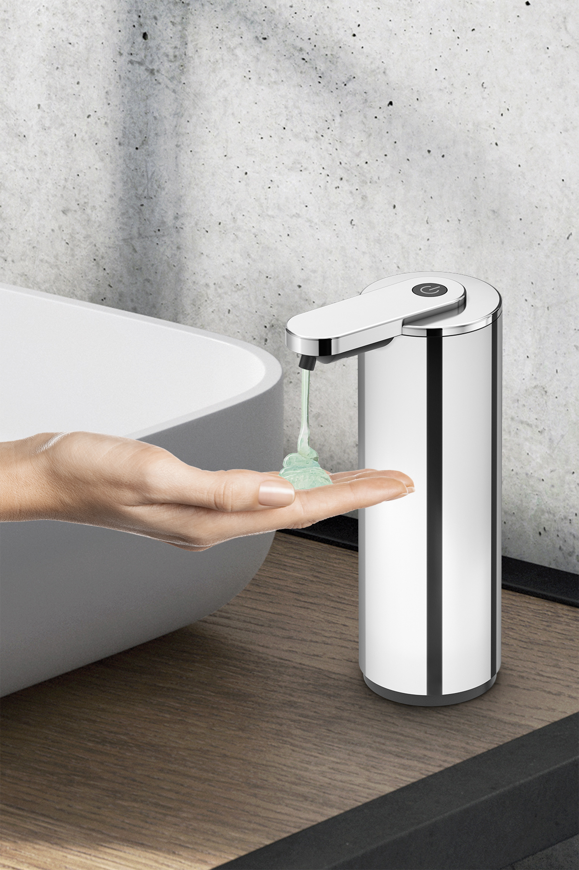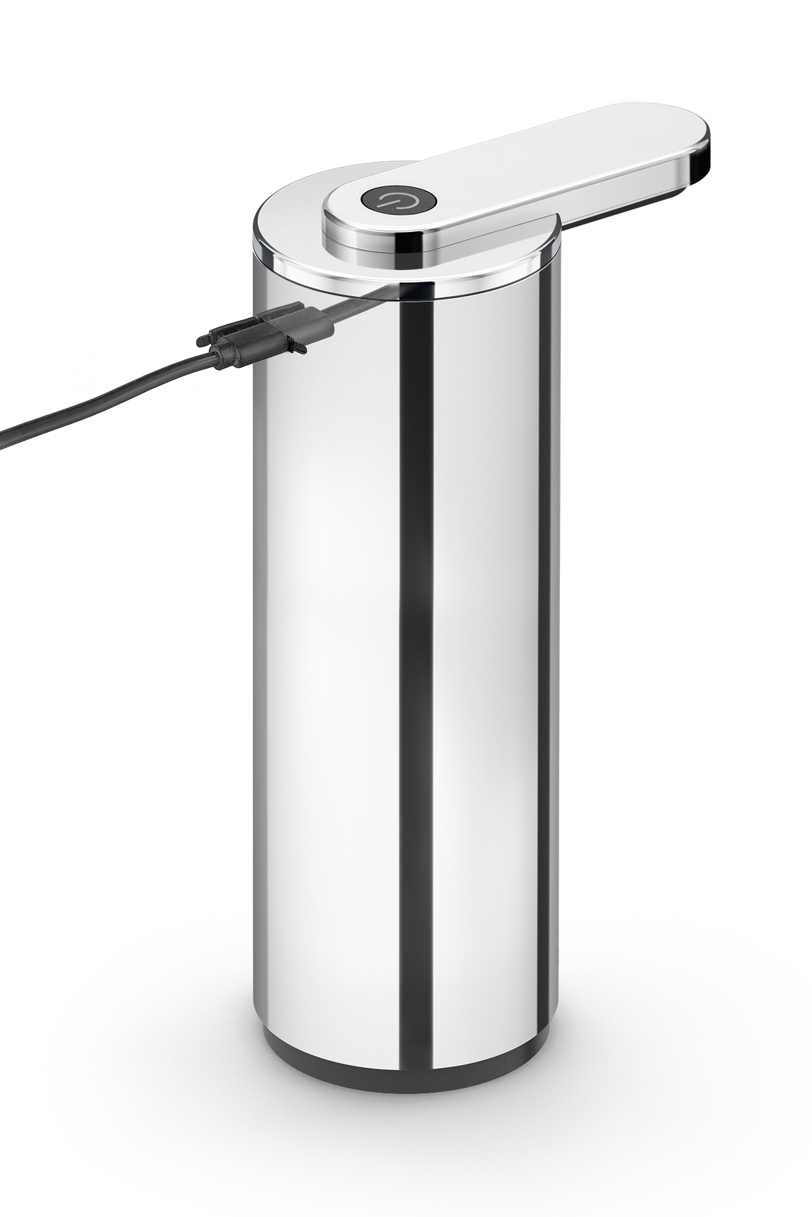 With infrared sensor. For liquid soap, lotion and disinfectant gel as well as for contact-free dispensing with easy operation. Removal quantity selectable in 2 steps. No dripping. With rechargeable battery (2W DC 5.0V/ 0.8A), 1800mAh Li-Ion, a USB cable is included. Long battery life. Inner container (PETG) to screw in. Stable.