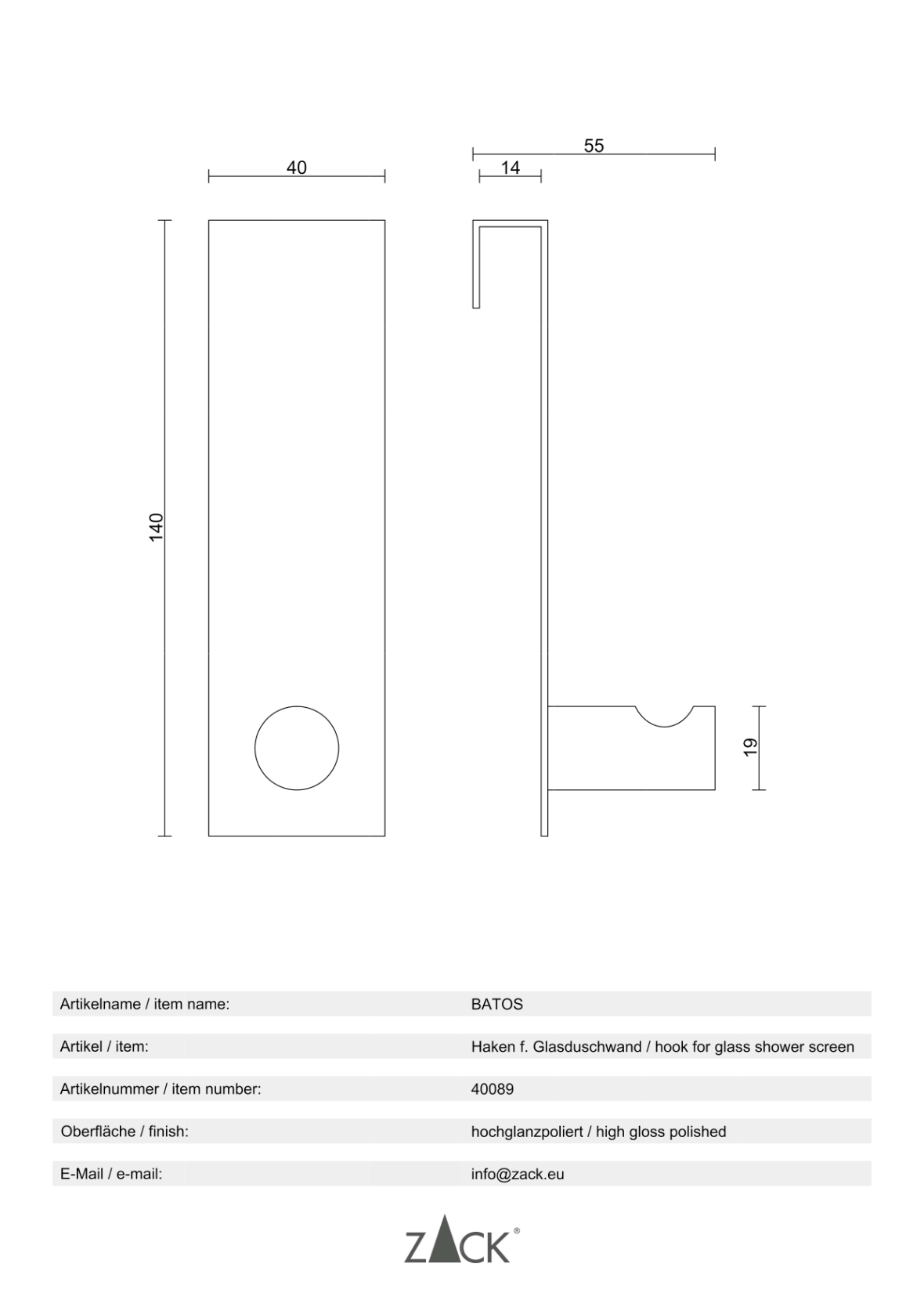 The BATOS hook is specially designed for frameless glass showers. Towels or bathrobes will be immediately ready after your shower, and a recess holds the hanging loop in place.