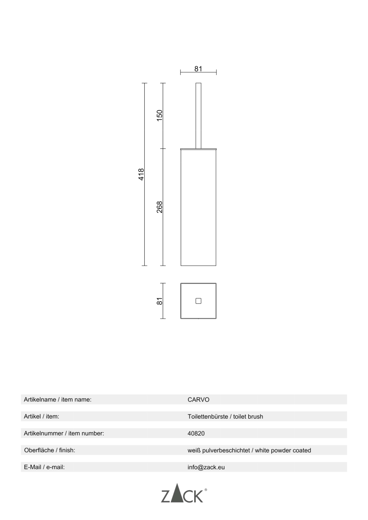 - Further complementary accessories from the ZACK design series "CARVO" are available