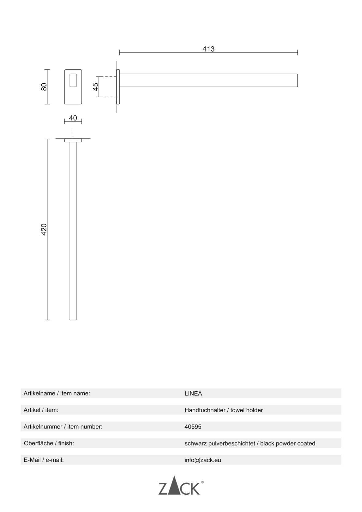 - Other complementary accessories from the ZACK design series "LINEA" are available