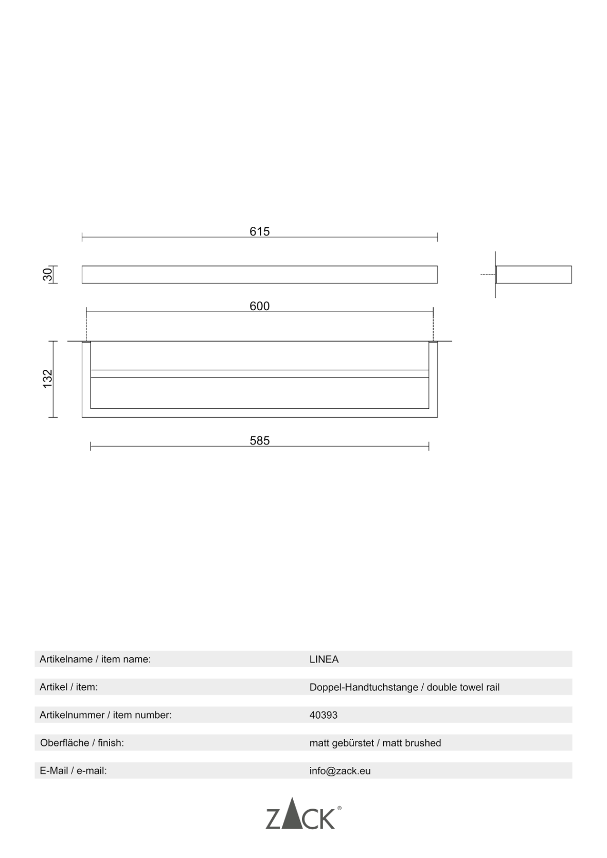 - Other complementary accessories from the ZACK design series "LINEA" are available