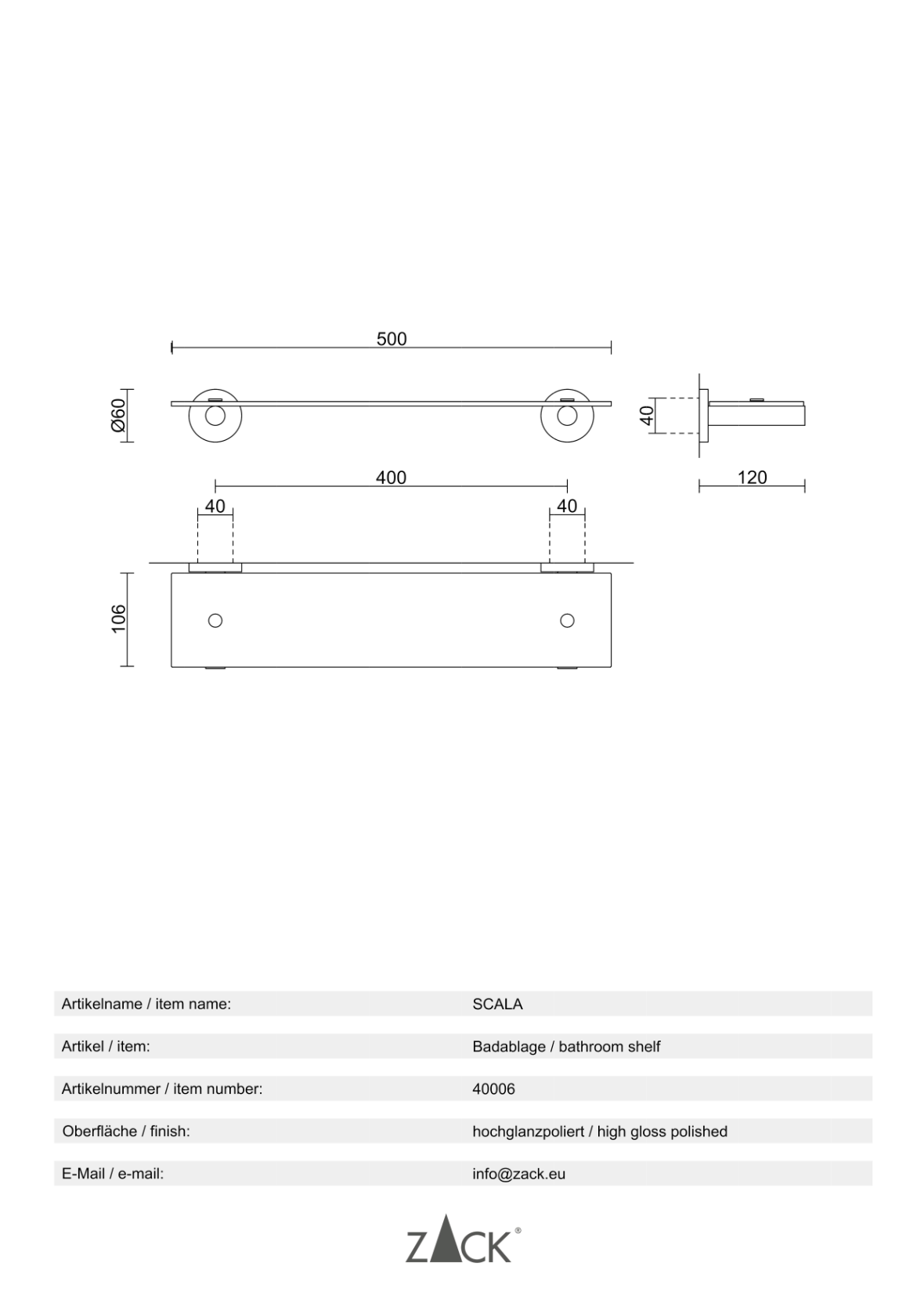 - Other complementary accessories from the ZACK design series "SCALA" are available