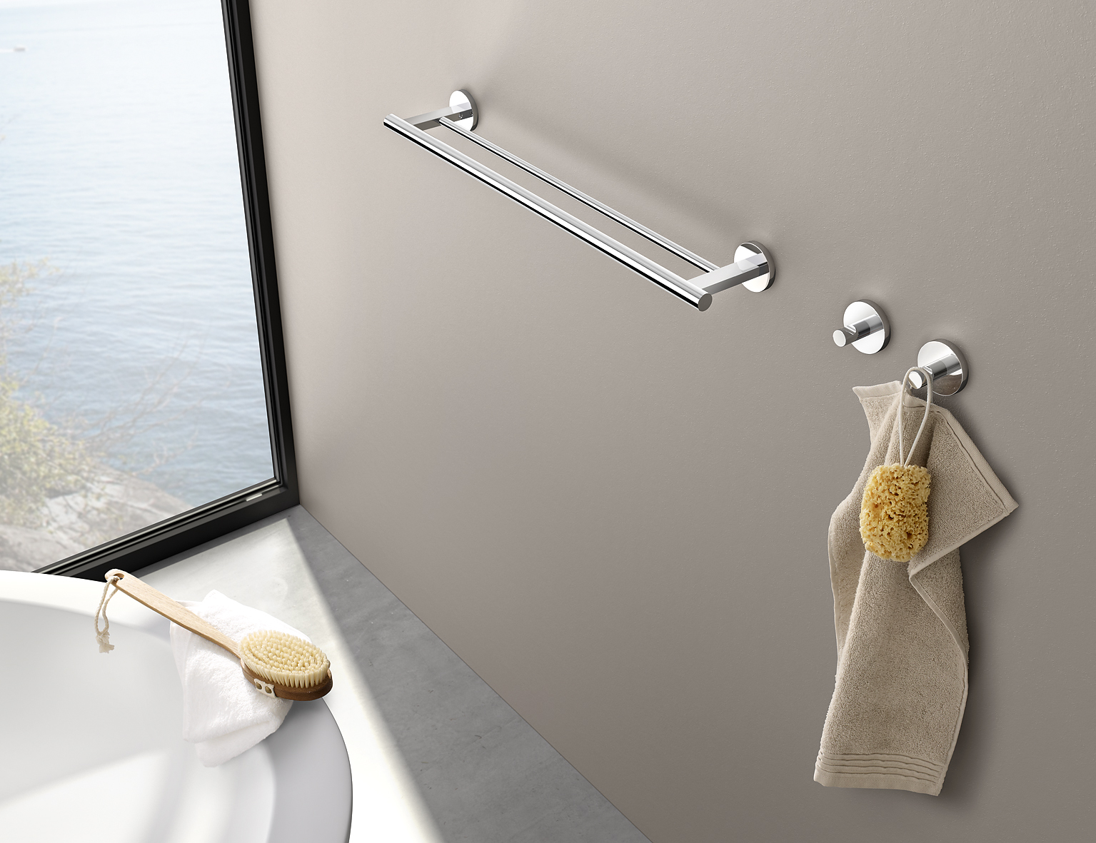 Make your towels a decorative eye-catcher - hanging over the double towel rail, two towels will always be within easy reach. After use, the distance from the wall offers sufficient space for drying.