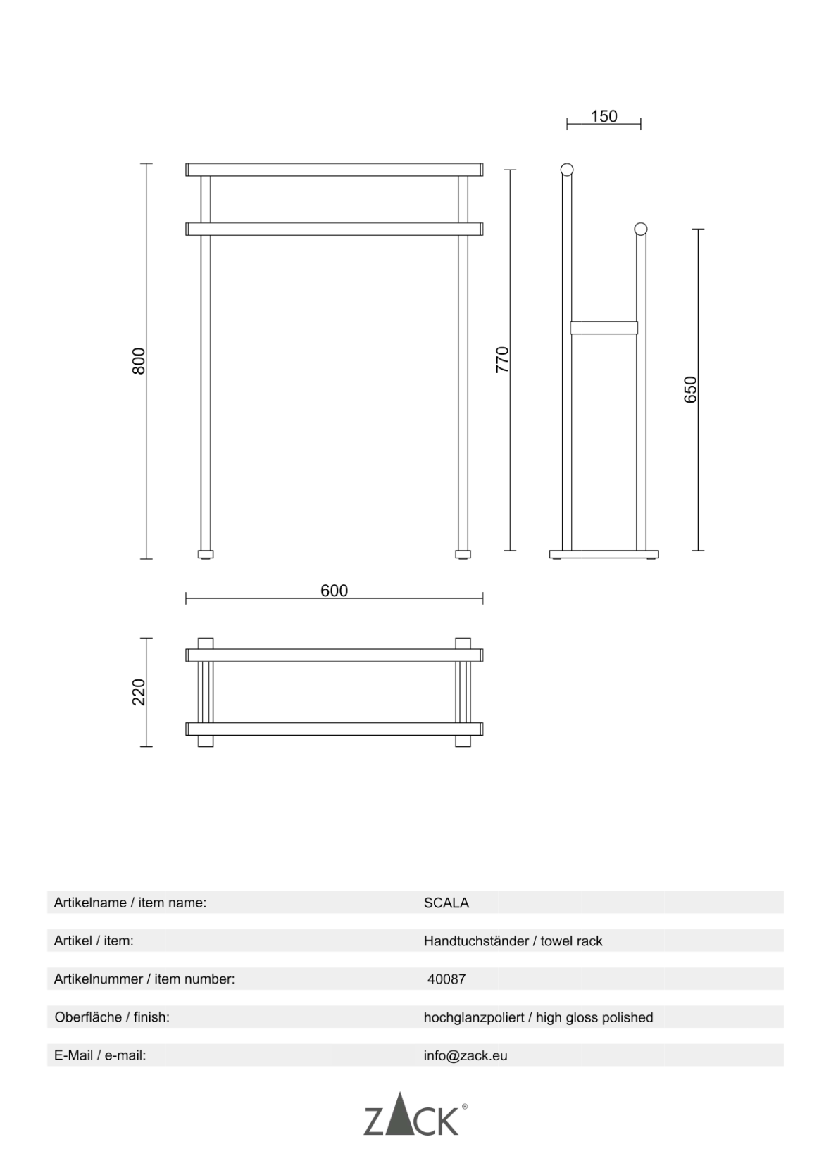 - Other complementary accessories from the ZACK design series "SCALA" are available