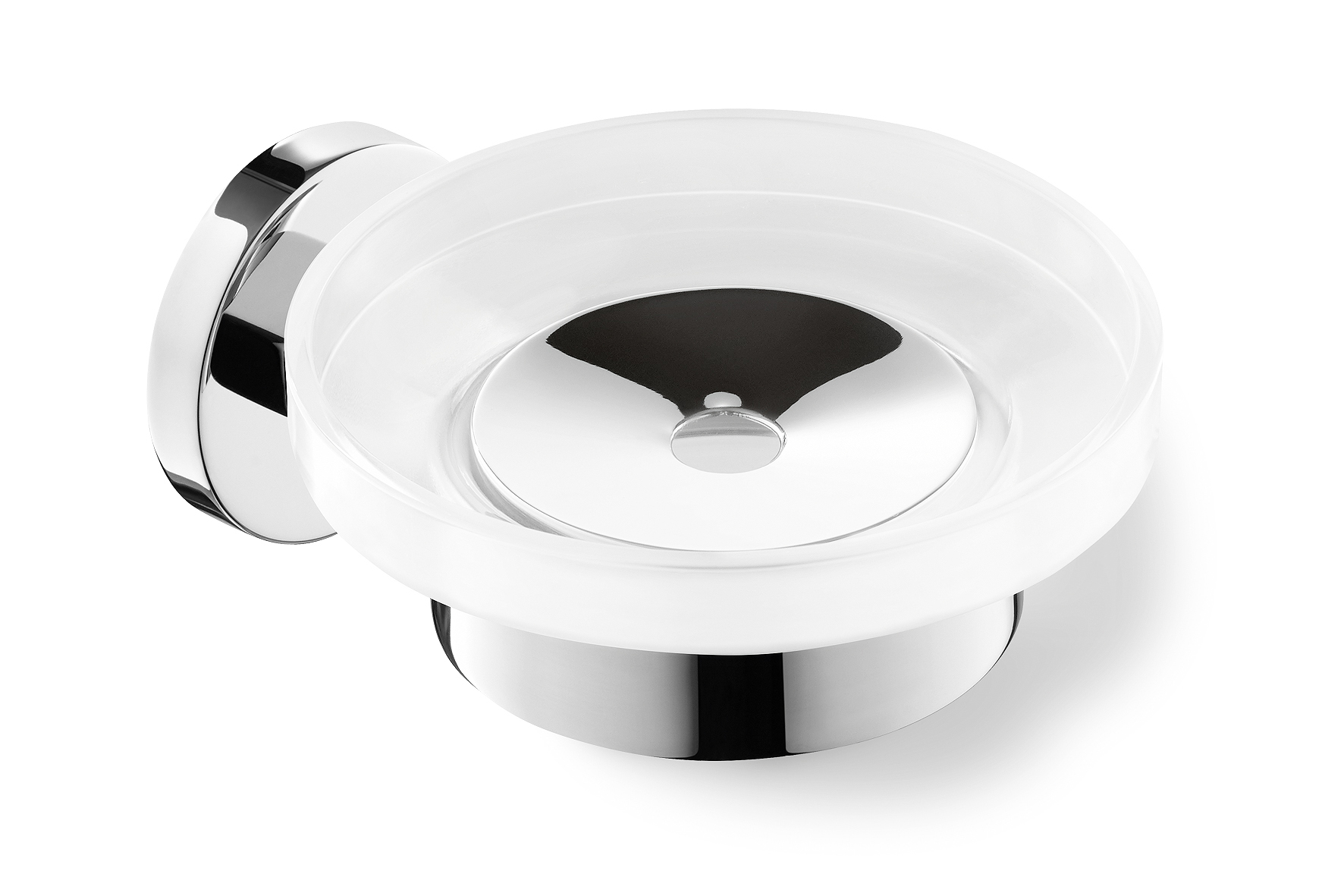 The satinised, semi-transparent soap dish simply hangs in the ring of the holder and can be easily removed for cleaning. The drip tray for the bar of soap can also be removed.