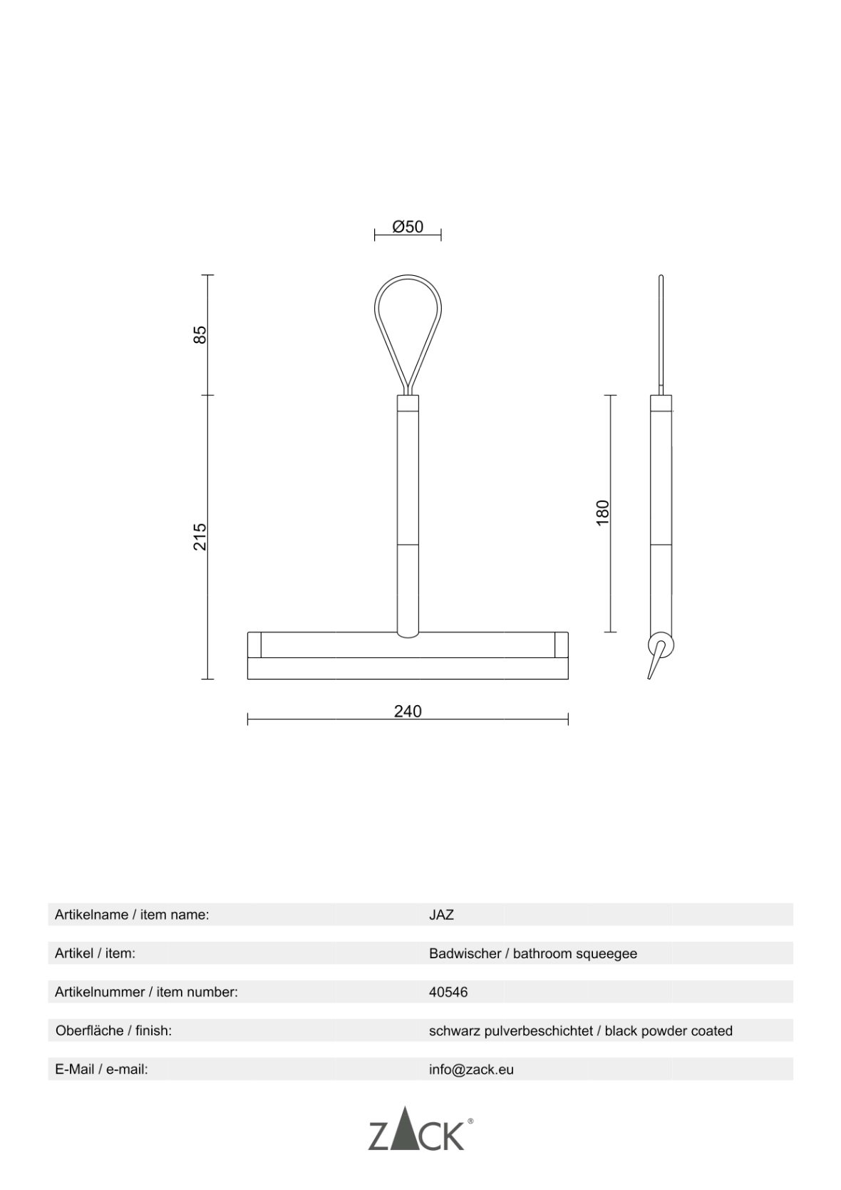 With the JAZ bathroom squeegee, you can remove water and soap residues from glass walls and tiles quickly and without leaving streaks. If the squeegee falls down, the end caps on both sides will protect the tiles. In addition, they fix the exchangeable removable lip in place so that it can't slip during handling. The bathroom squeegee can be hung up in many different places with the large, flexible loop. Incidentally, the suspension of the loop can be rotated and aligns itself in the desired direction.