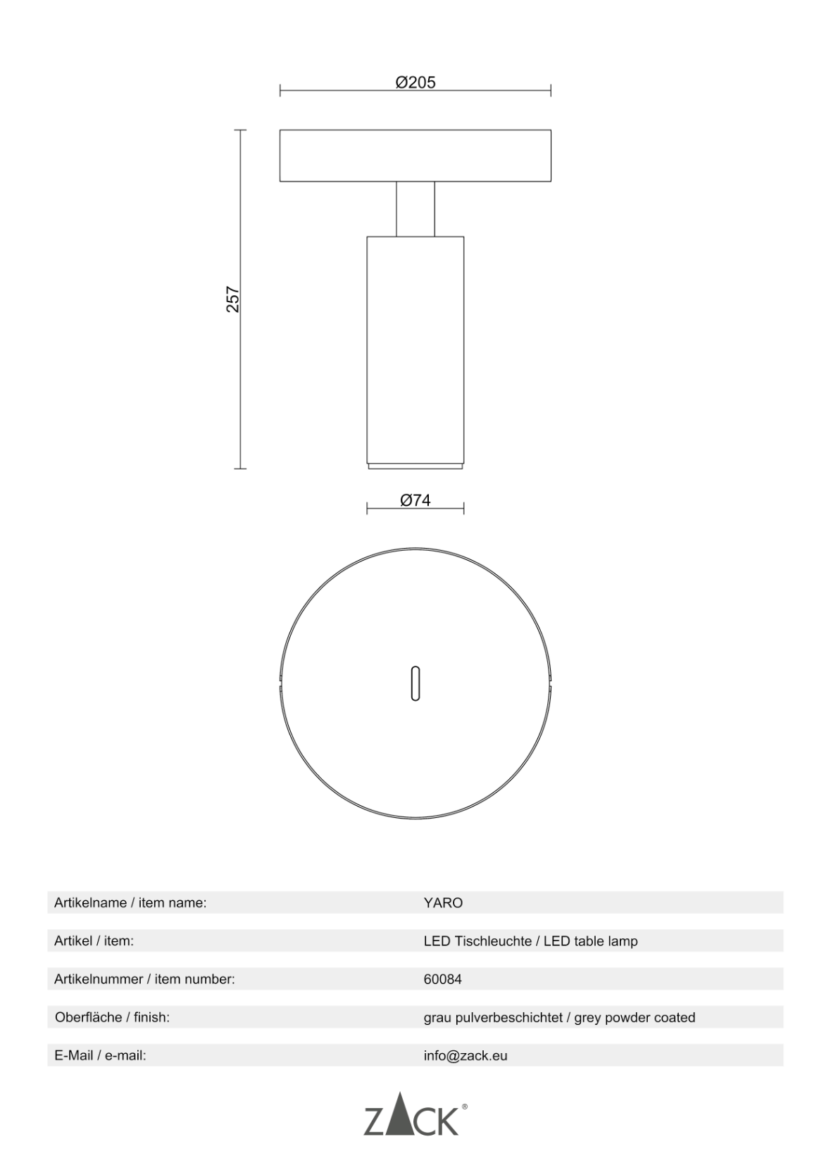 Product information “YARO” LED table lamp, gray