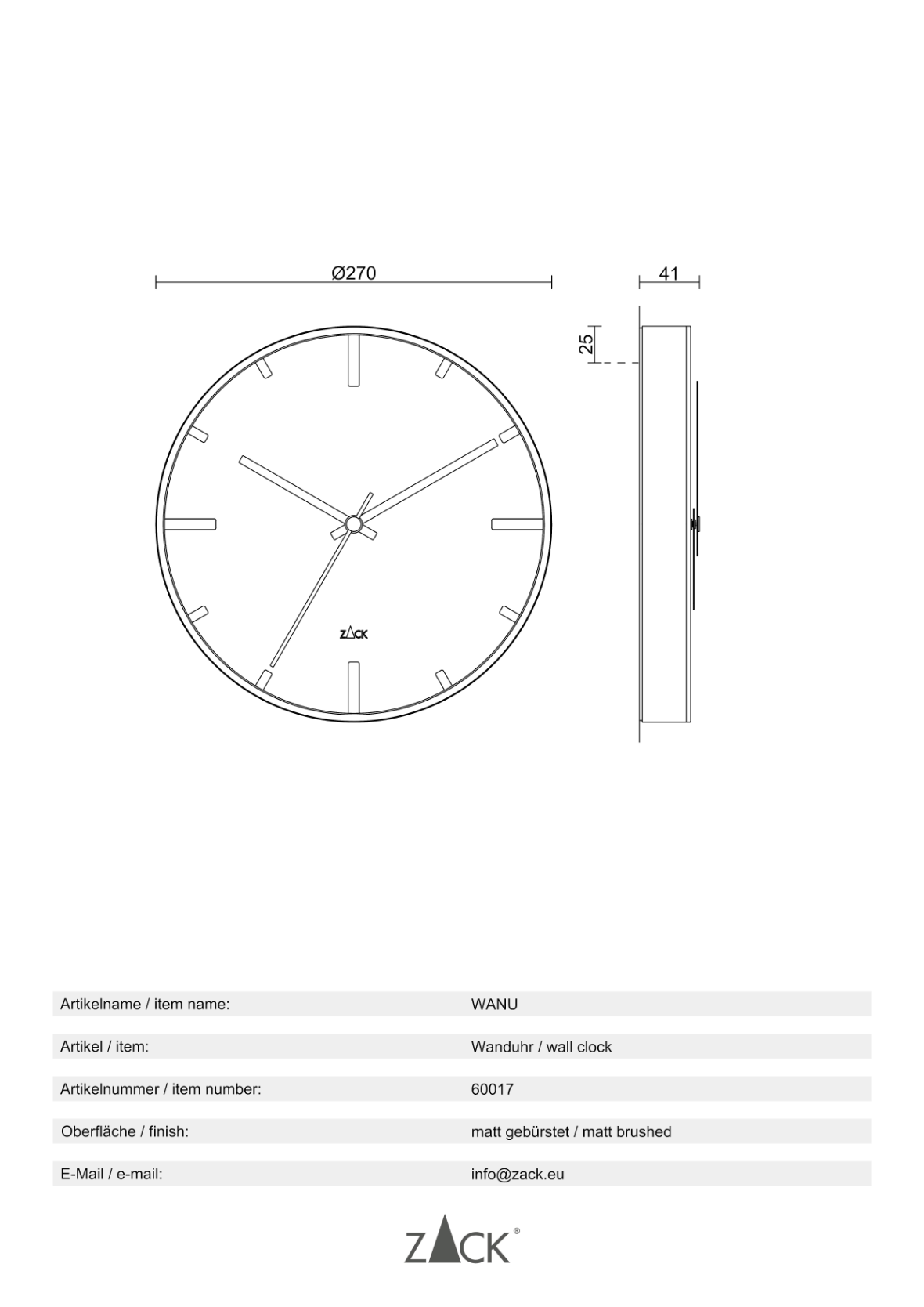 - Battery-powered, highly accurate quartz mechanism, Hour / minute / second