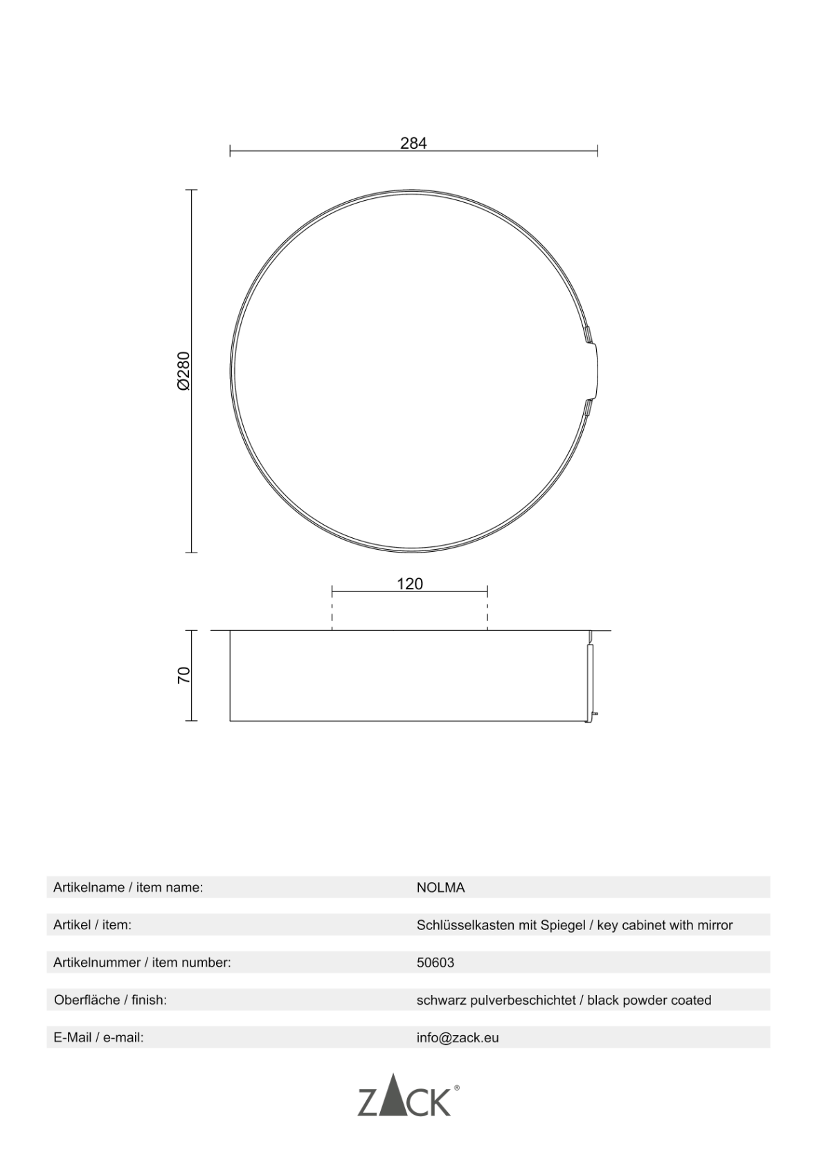 Product information "NOLMA" key cabinet with mirror ø 28 cm