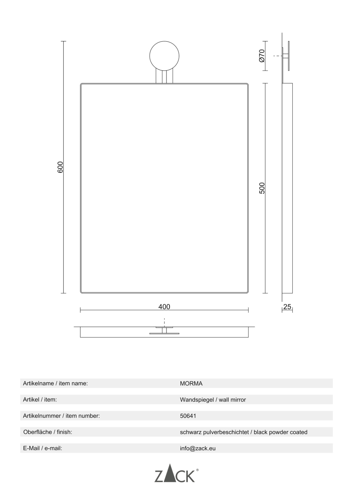 Product information "MORMA" wall mirror, 40 x 50 cm, black