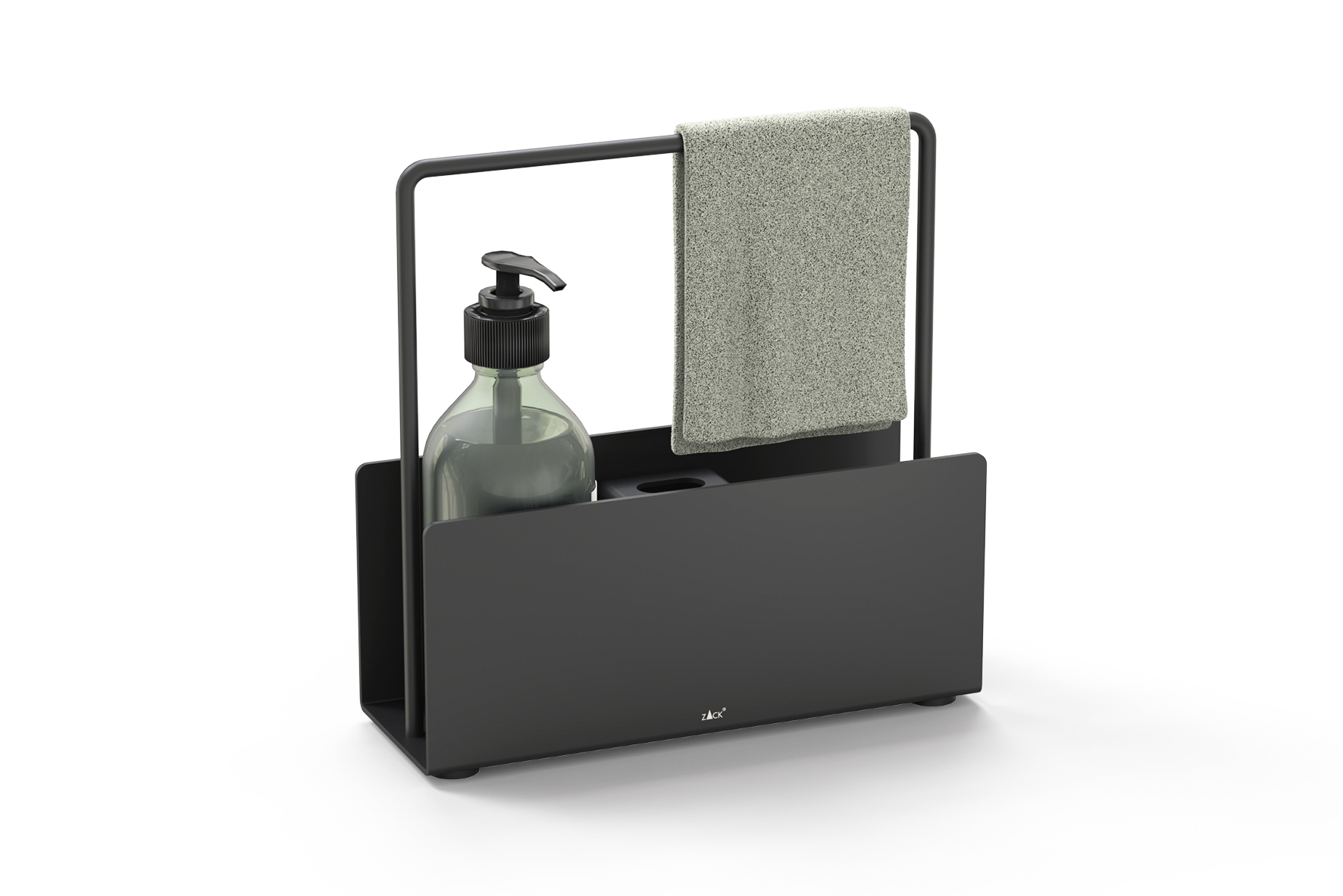 The matt black coated sink organiser from ZACK ensures orderly conditions around the sink.