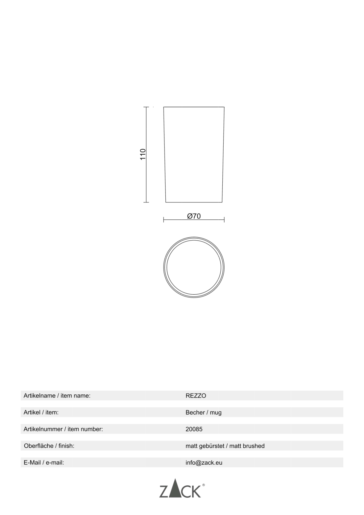 Informations sur le produit "REZZO" gobelet