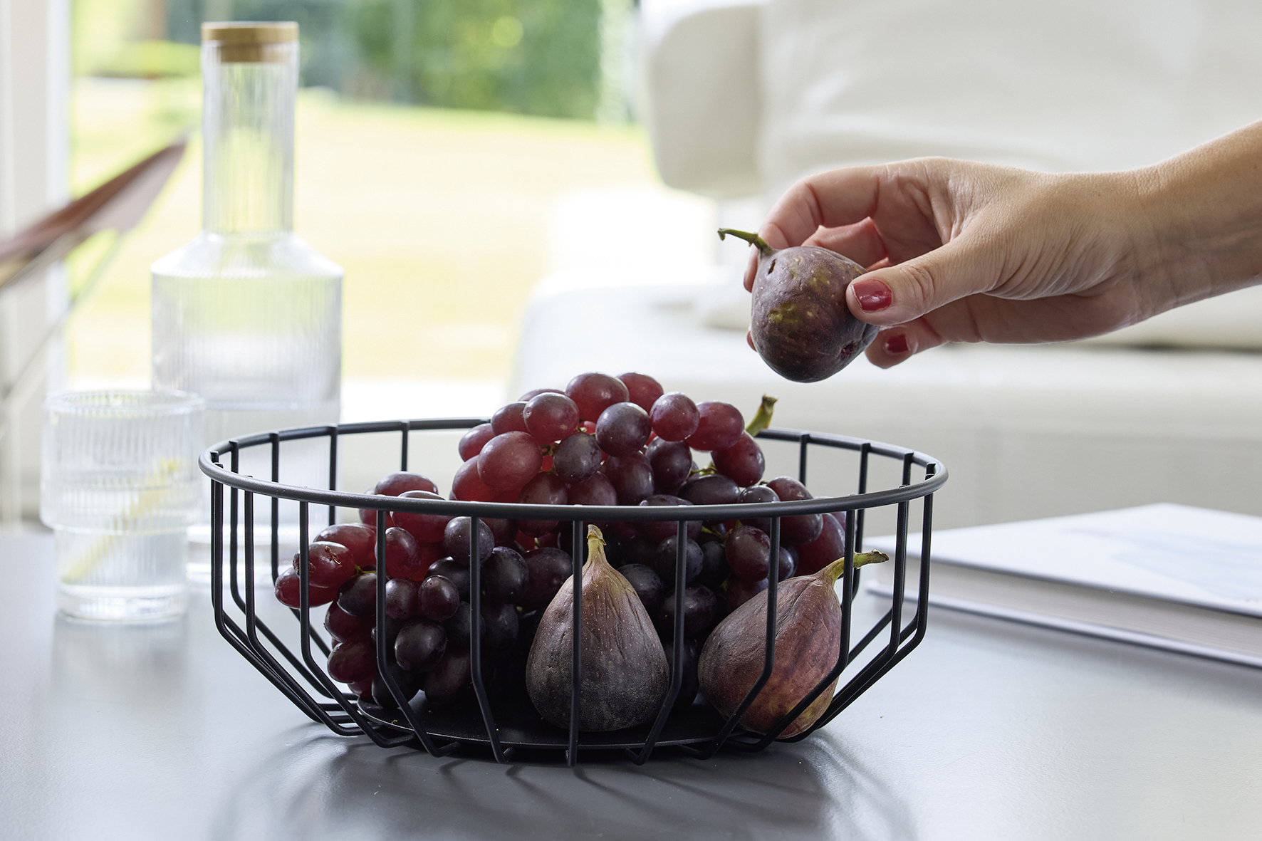 Pour présenter les fruits avec style. Convient également comme corbeille de décoration ou de rangement. Le tapis en caoutchouc au fond évite de rayer les surfaces sensibles.