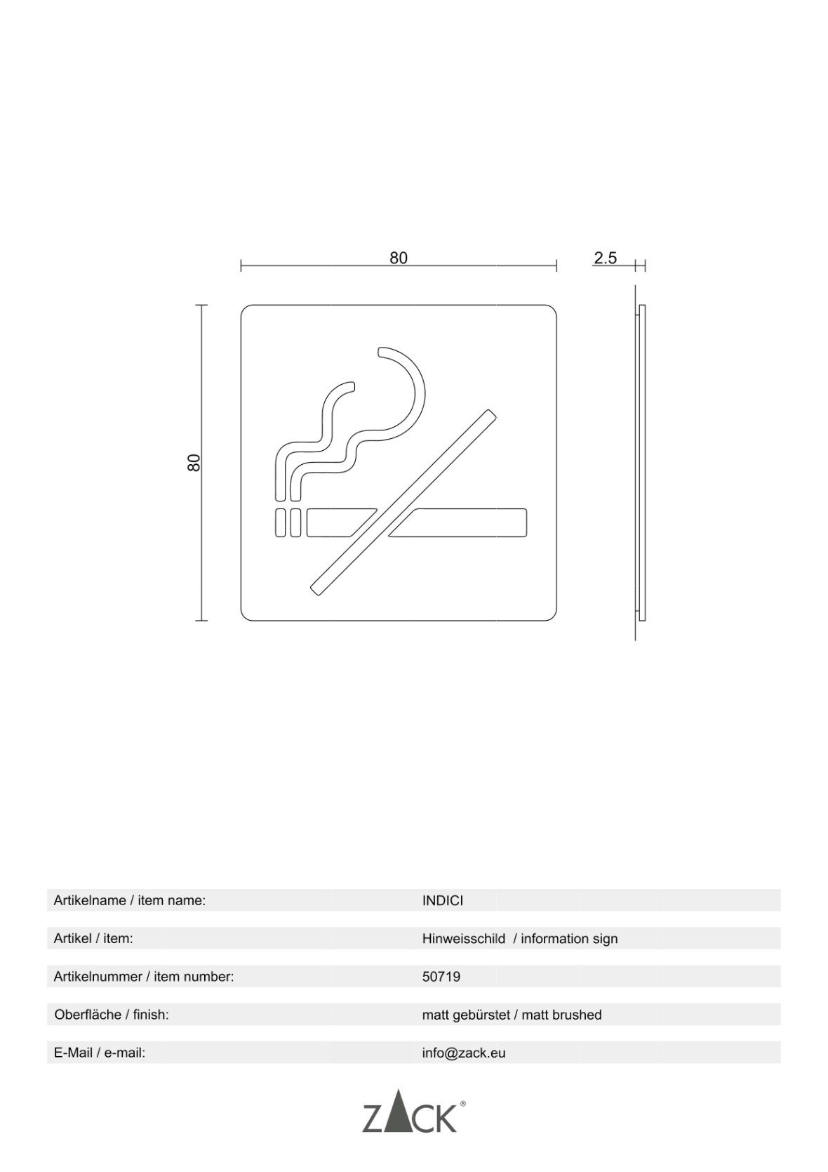 Informations sur le produit "INDICI" plaque de signalisation, "non-fumeurs"