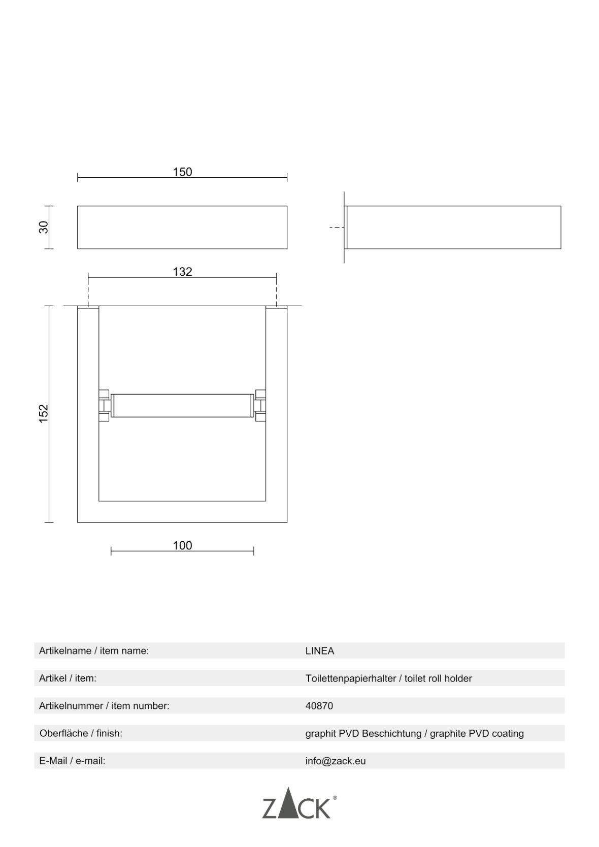 - D'autres accessoires complémentaires de la série design ZACK « LINEA » sont disponibles