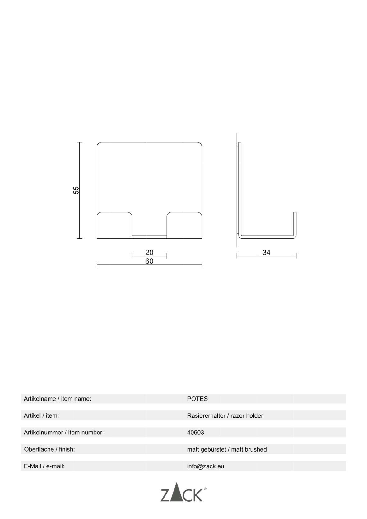 Informations sur le produit "POTES" support de rasoir, mat