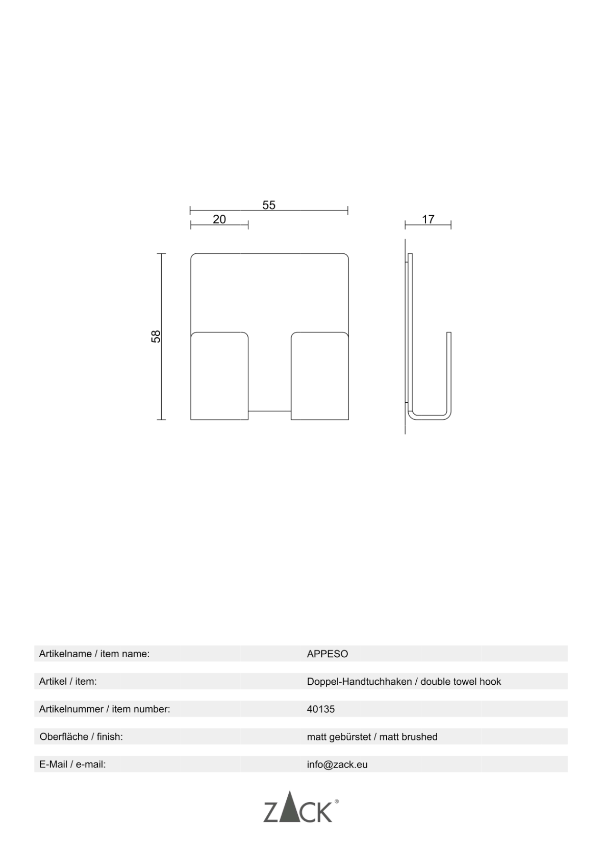 Informations sur le produit "APPESO" double crochet porte-serviette