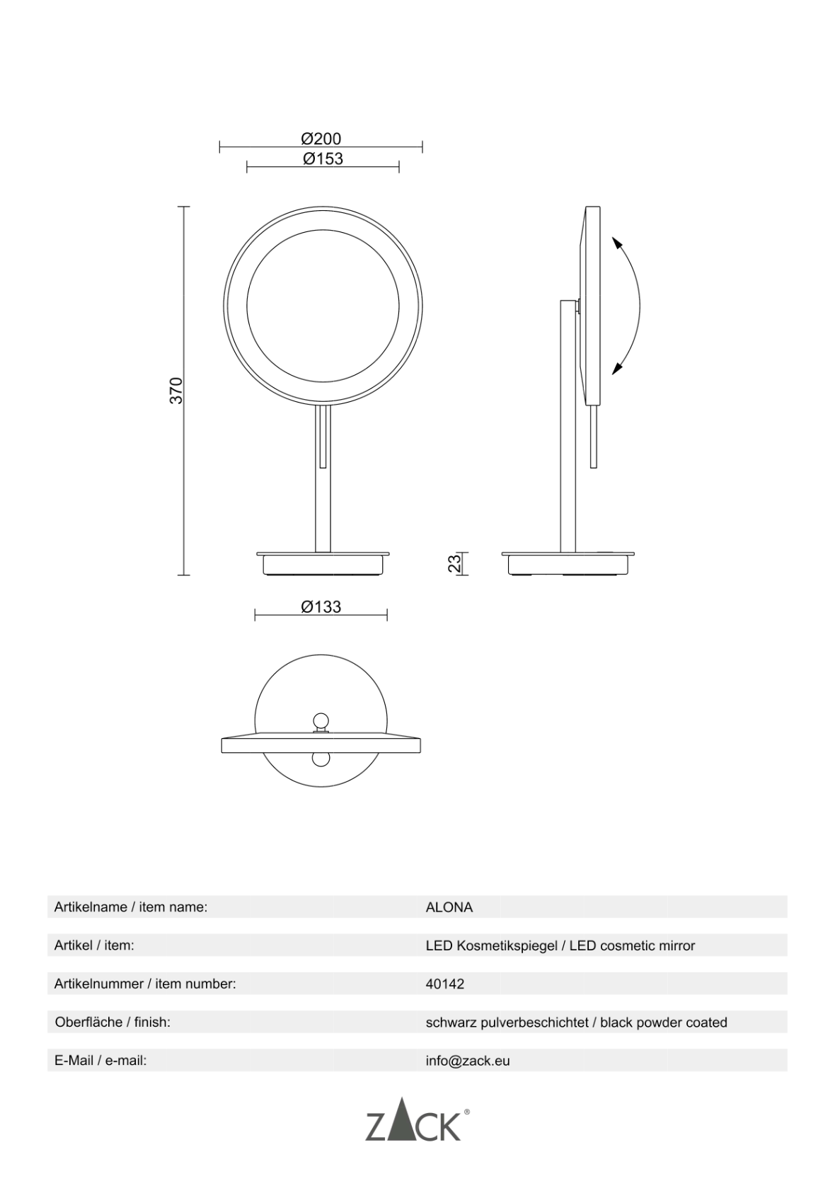 Grâce au grossissement x 5, même les petits détails sont clairement visibles lors du maquillage ou du rasage, et la surface du miroir peut être réglée en continu pour un angle de vue optimal grâce à une articulation située à l’arrière. L’éclairage complet à diodes électroluminescentes (LED) fournit une lumière uniforme et sans ombre dans une agréable couleur blanc lumière du jour.
