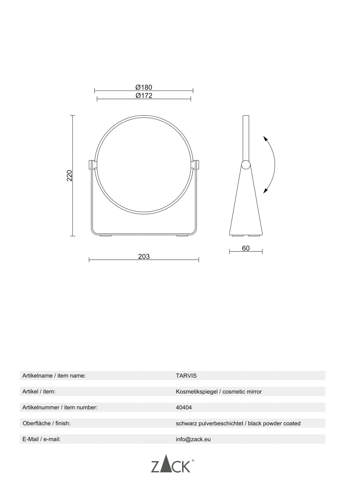 Informations sur le produit "TARVIS" miroir cosmétique, noir