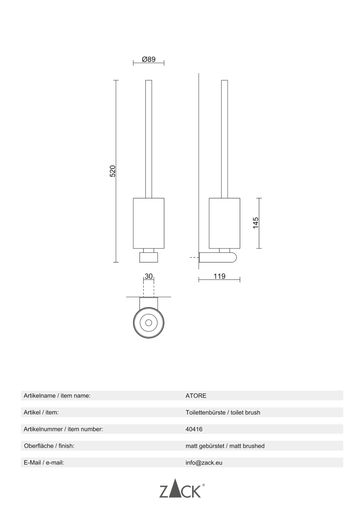 - D’autres accessoires complémentaires de la série design ZACK « ATORE » sont également disponibles