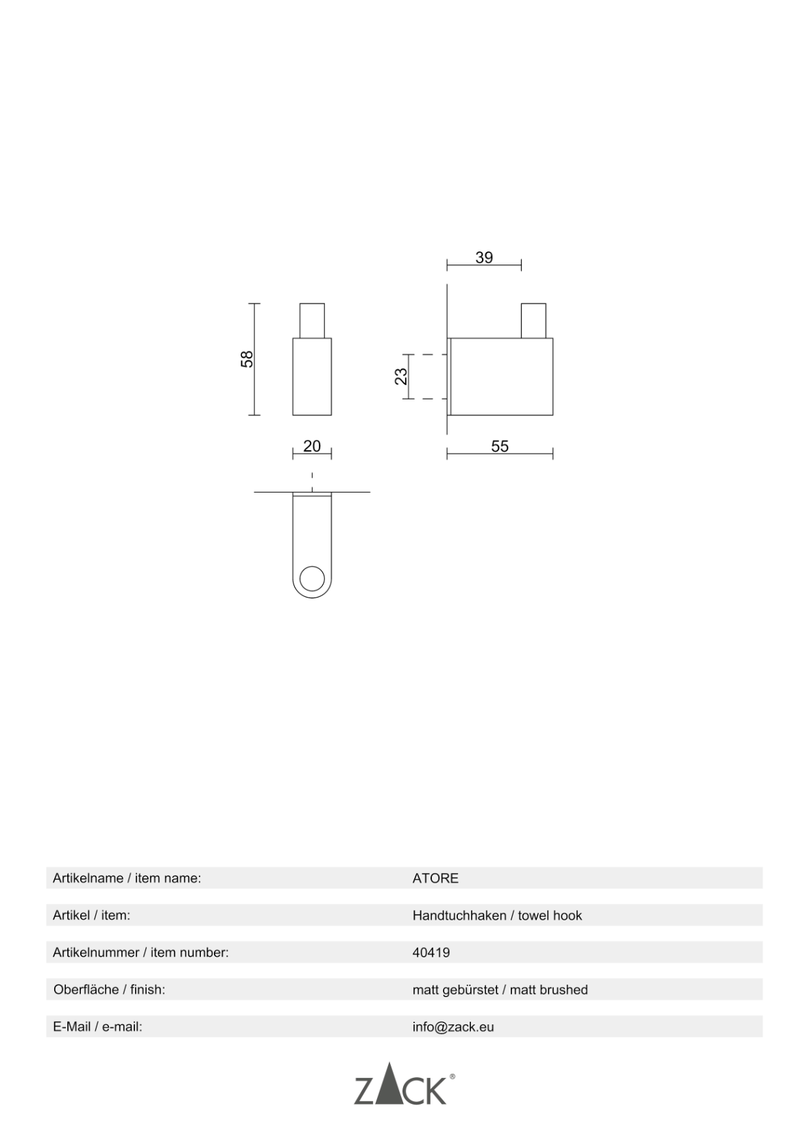 - D’autres accessoires complémentaires de la série design ZACK « ATORE » sont également disponibles