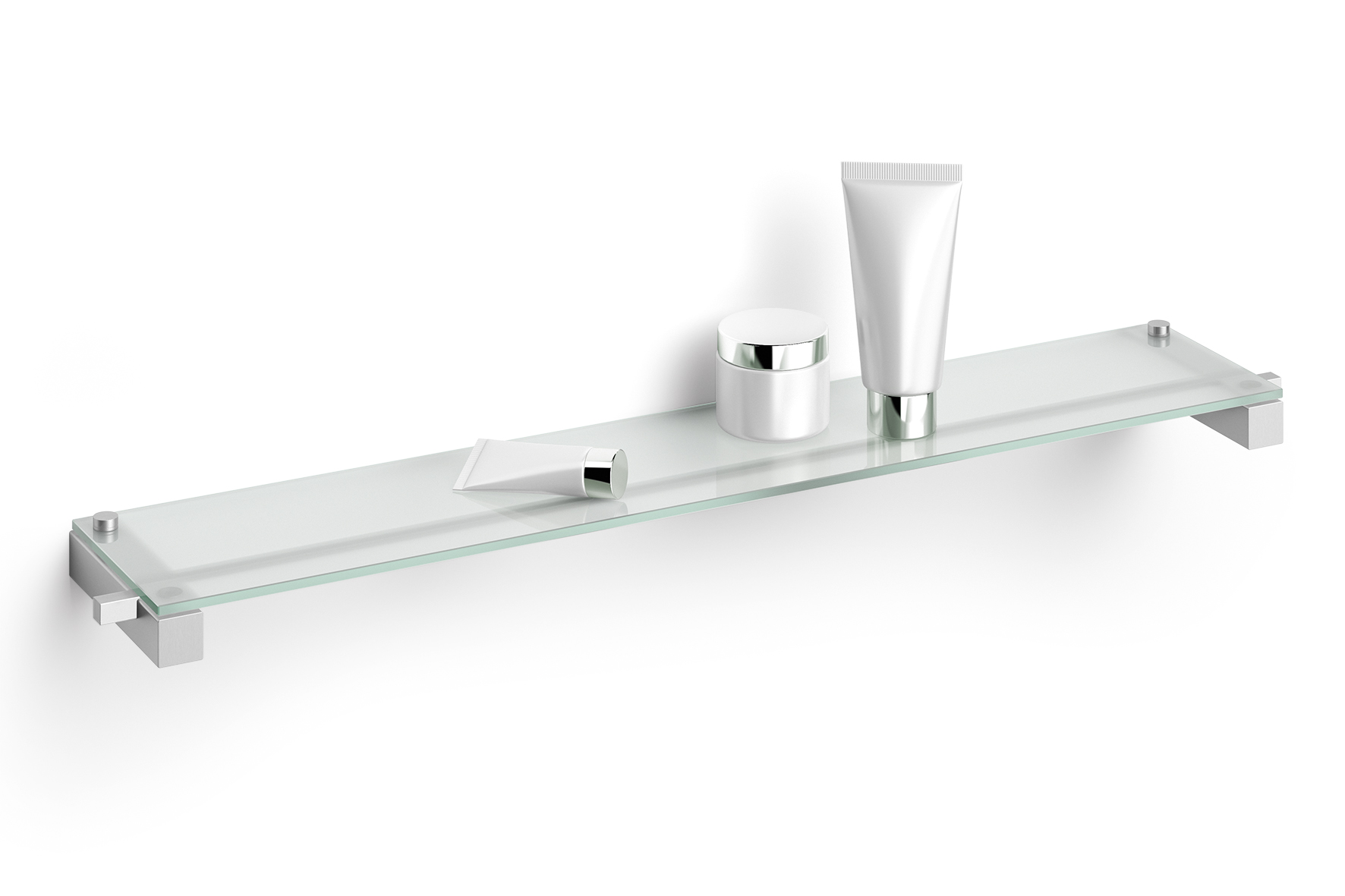L’étagère en verre trempé est fermement fixée aux deux supports et la surface lisse est facile à nettoyer.