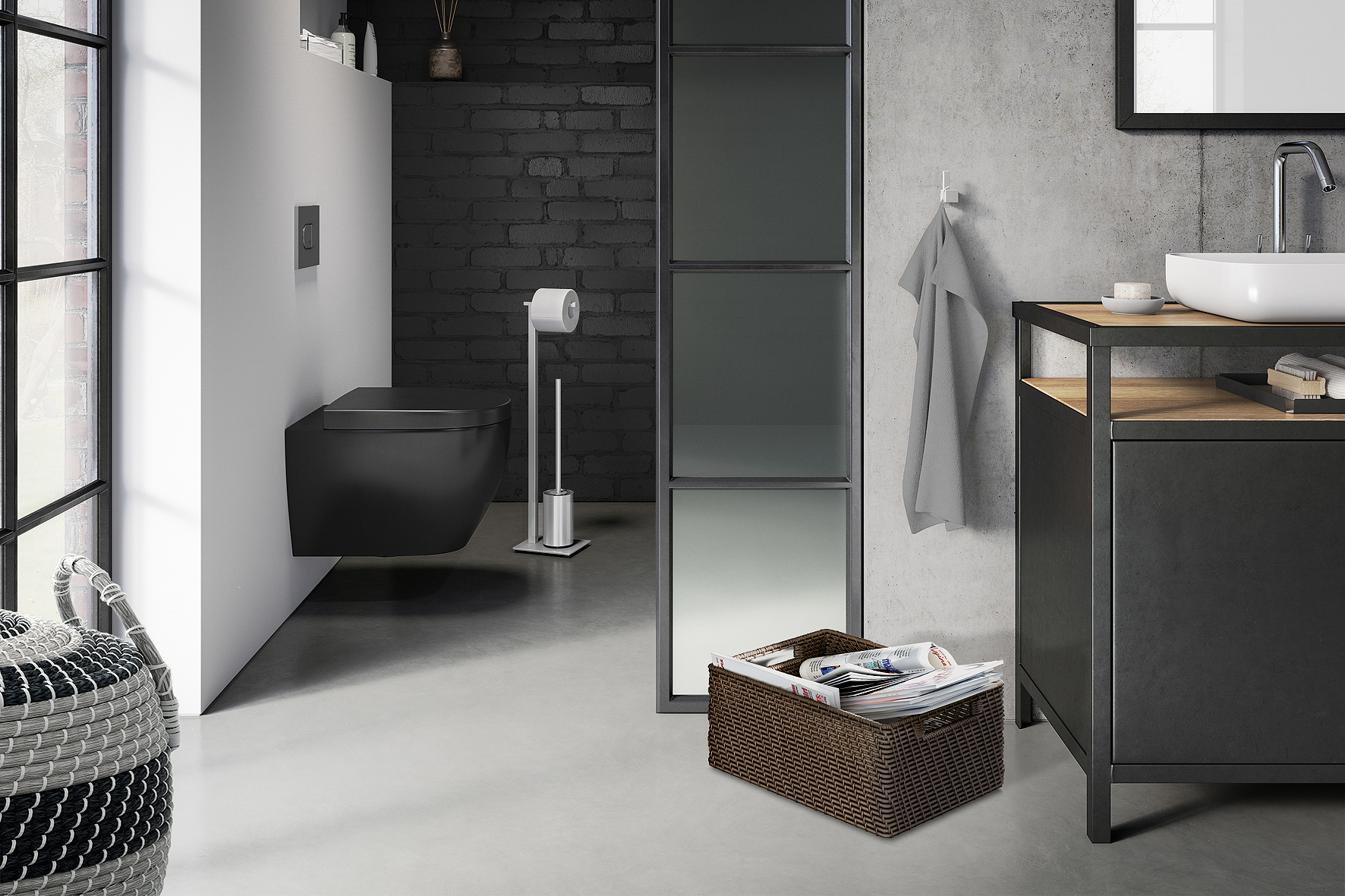 En tant qu’accessoire élégant, le serviteur WC est toujours à portée de main.