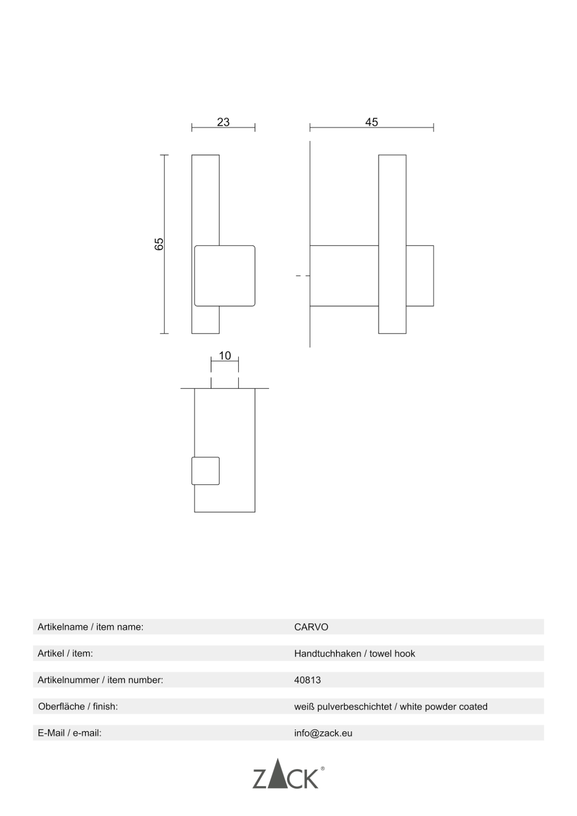 Informations sur le produit "CARVO" crochetporte-serviette, blanc