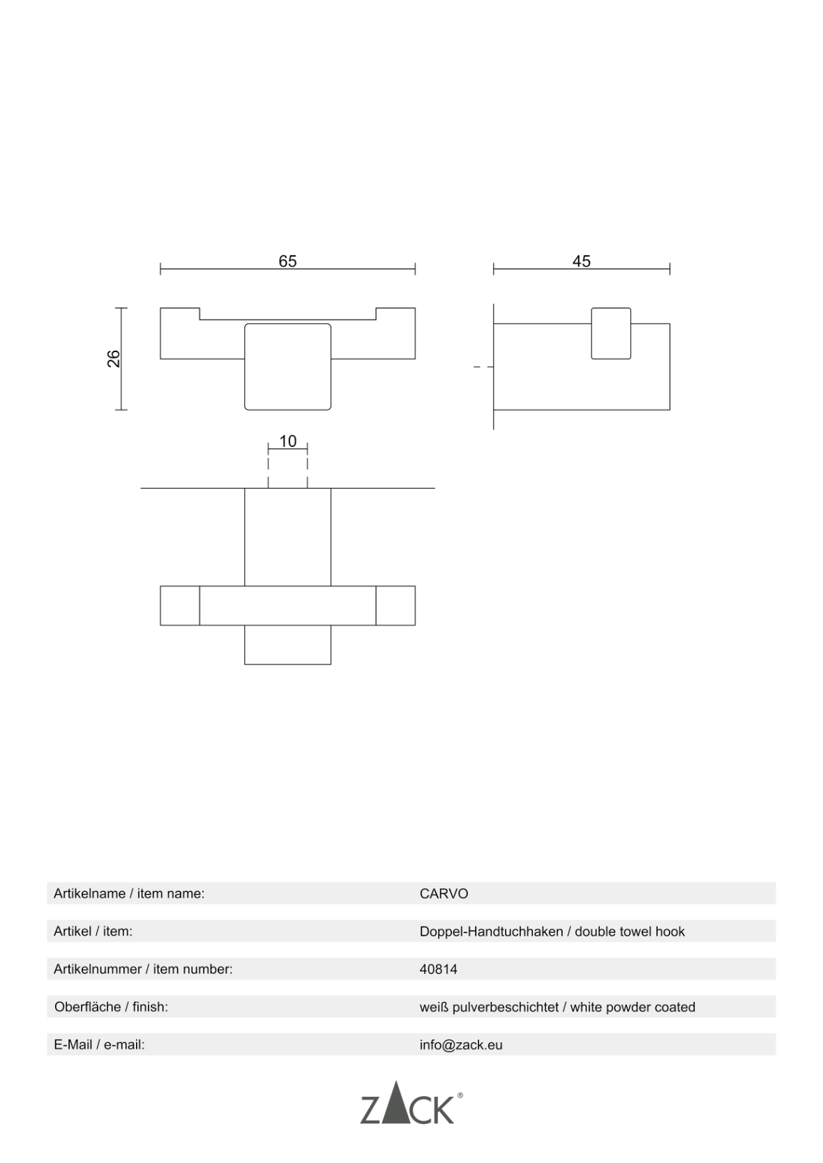Informations sur le produit "CARVO" double crochetporte-serviette, blanc