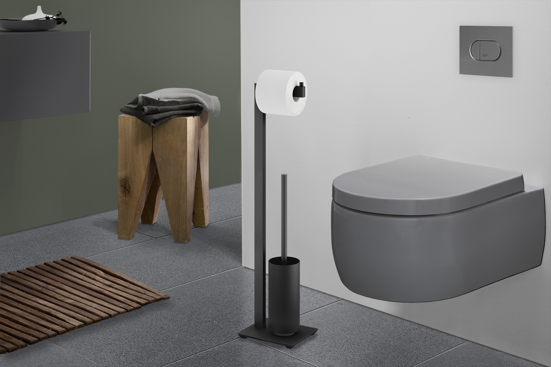 La brosse WC avec tête de brosse interchangeable dispose d’un long manche. Le porte-brosse extra-haut garantit une faible visibilité de la brosse, si nécessaire, il peut être retiré complètement ; un contenant intérieur supplémentaire amovible en plastique facilite le nettoyage.
