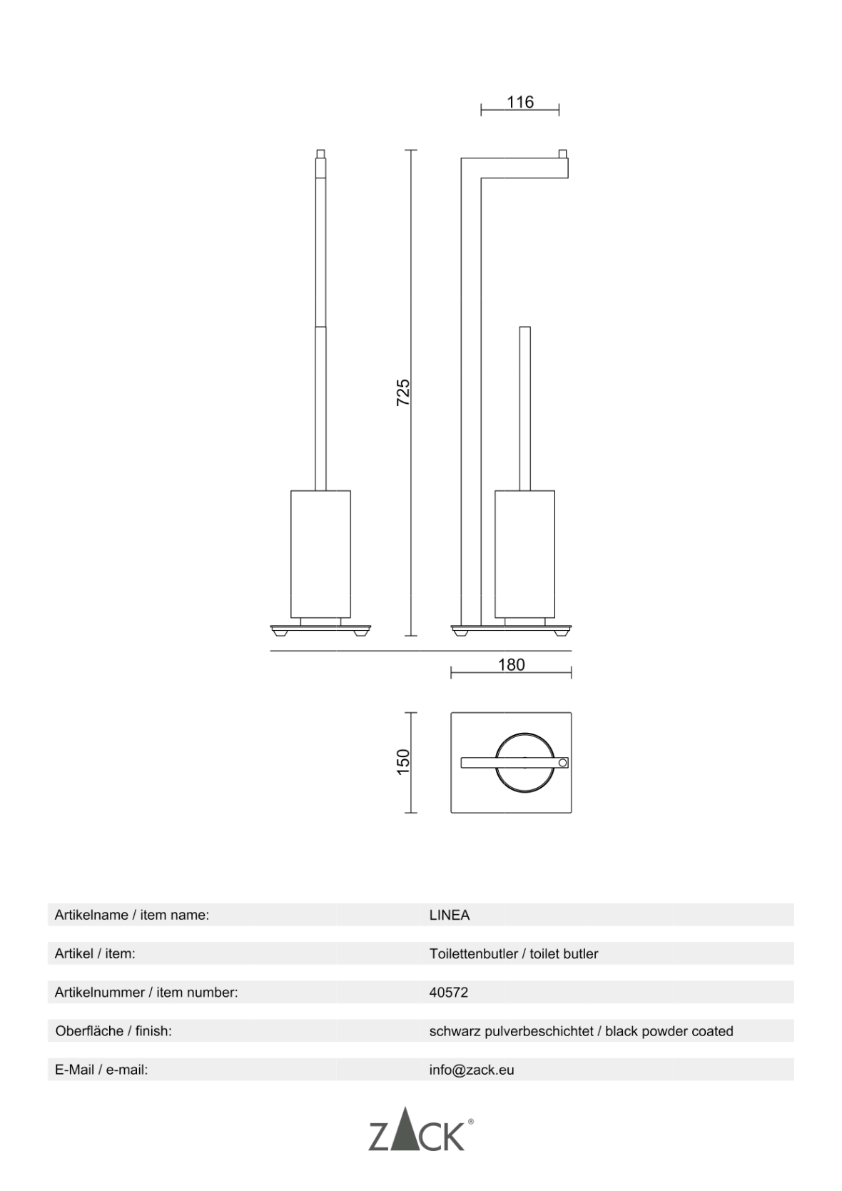 - D’autres accessoires complémentaires de la série design ZACK « LINEA » sont également disponibles