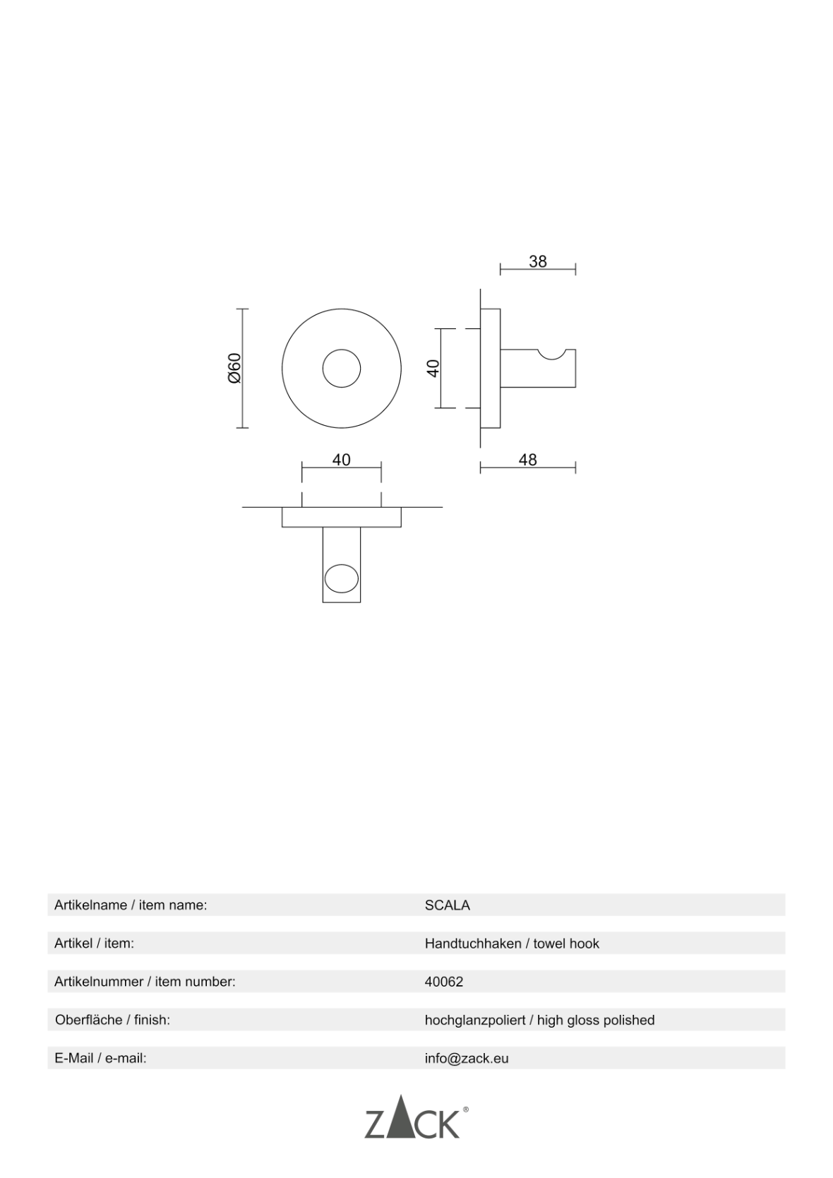 - D’autres accessoires complémentaires de la série design ZACK « SCALA » sont également disponibles