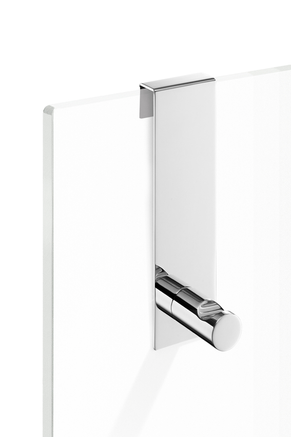 Der Haken wird einfach über die Glaswand gehängt, kein Bohren oder Kleben ist nötig. Ein weiches, transparentes Kunststoffpad auf der Innenseite verhindert ein Verrutschen und schützt zudem die Glasoberfläche.