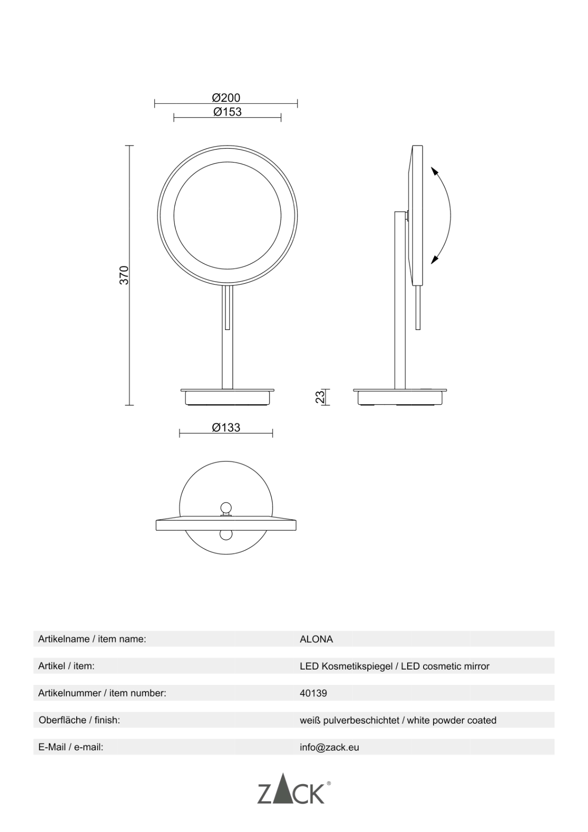 Produktinformationen "ALONA" LED Kosmetikspiegel, W