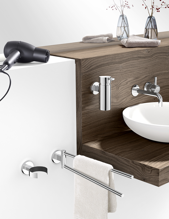 Die Accessoires der Serie SCALA lassen das urbane Bad in zeitlosem Glanz erstrahlen.