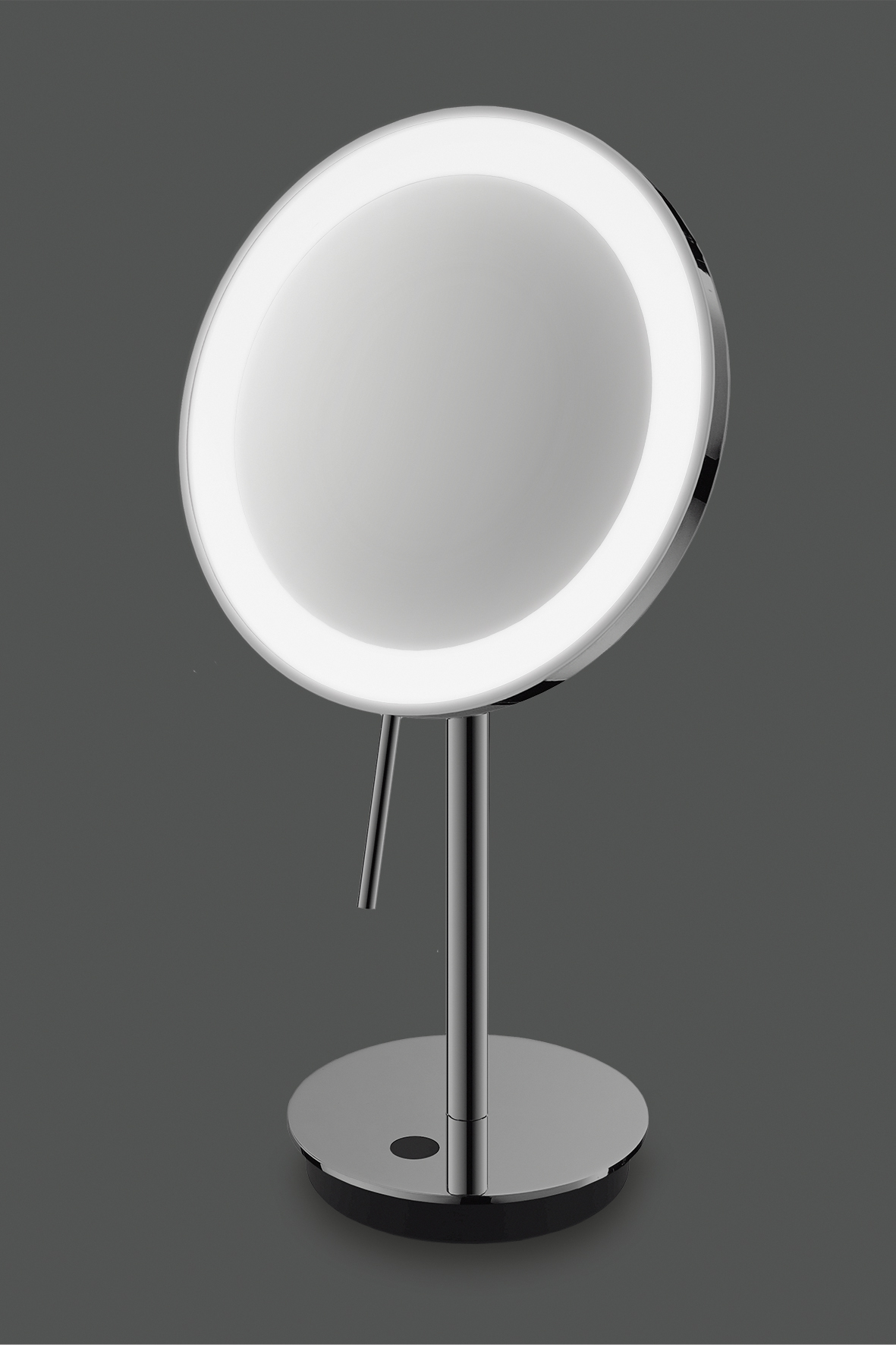 Grâce au grossissement x 5, même les petits détails sont clairement visibles lors du maquillage ou du rasage, et la surface du miroir peut être réglée en continu pour un angle de vue optimal grâce à une articulation située à l’arrière. L’éclairage complet à diodes électroluminescentes (LED) fournit une lumière uniforme et sans ombre dans une agréable couleur blanc lumière du jour.