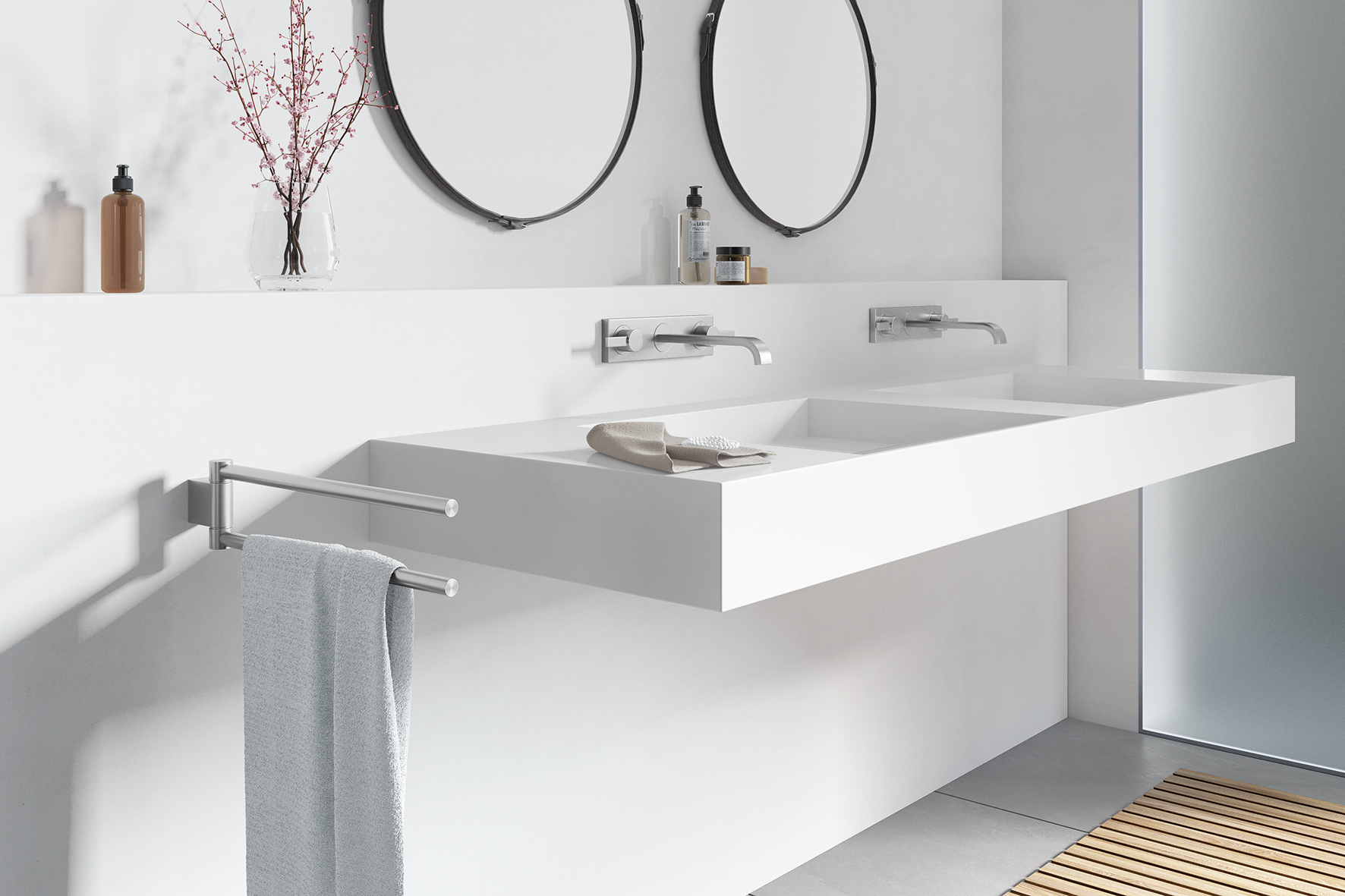 Une serviette toujours à portée de main près du lavabo – c’est à cet endroit que le porte-serviettes, qui peut être monté sur le côté, rend un service fiable. Deux bras pivotants simplifient la manipulation et donnent aux serviettes suffisamment d’espace pour sécher.